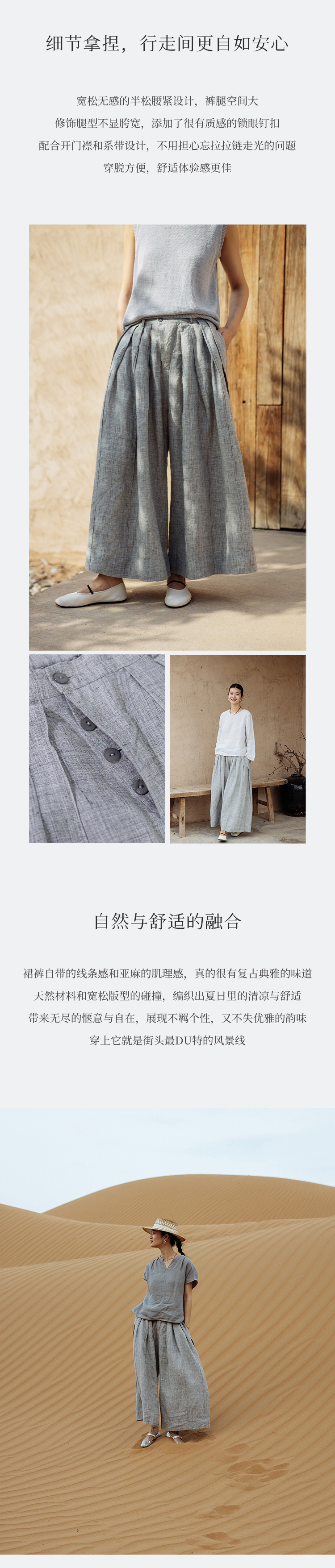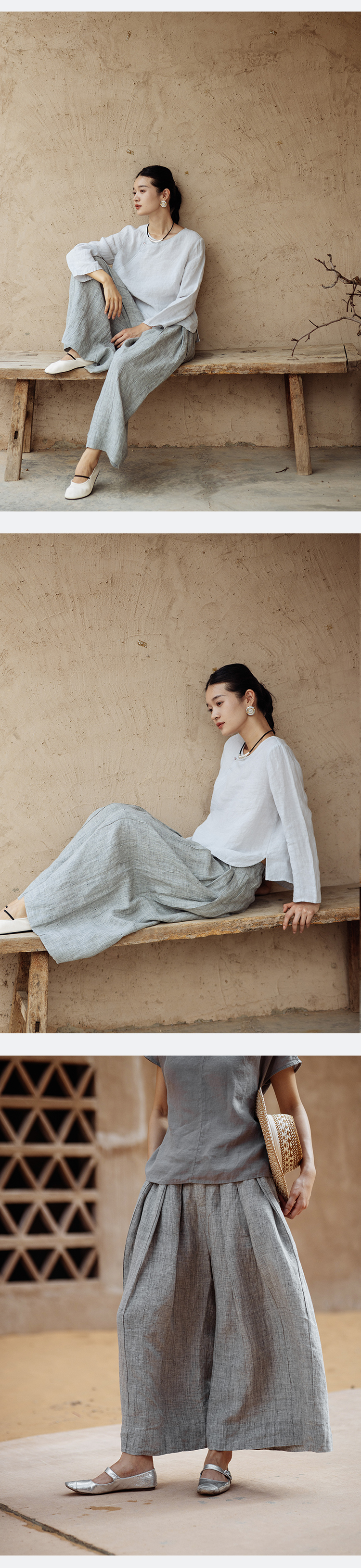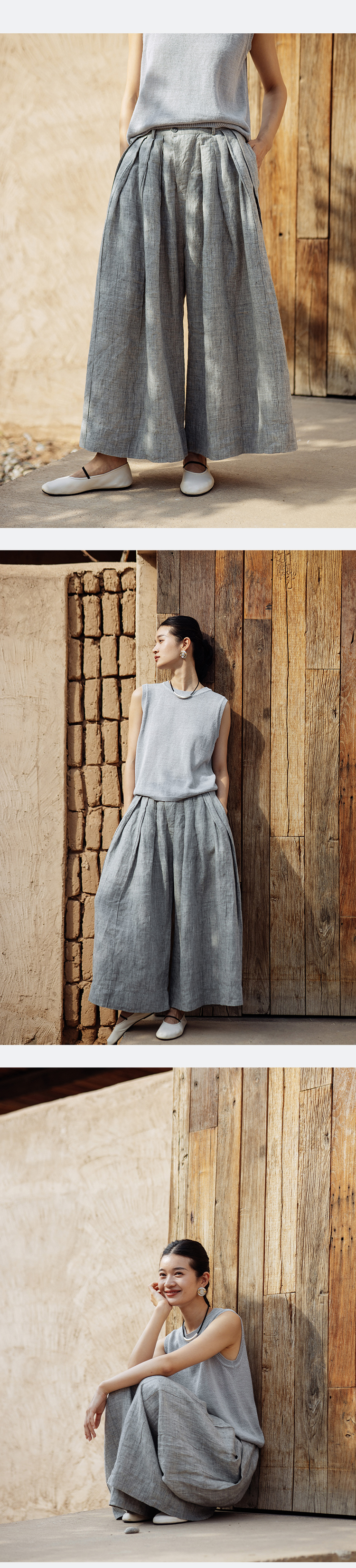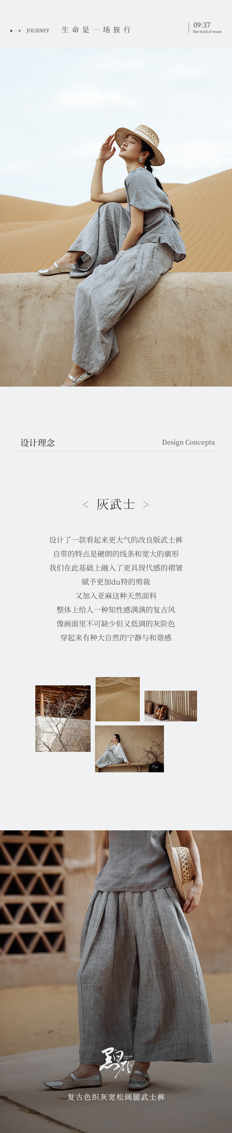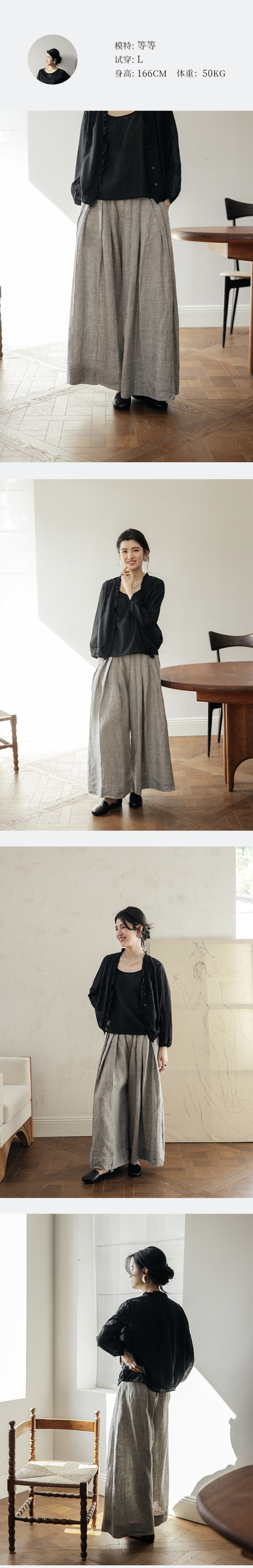 绽放343朵【黑白灰系列·灰武士】色织亚麻休闲裤宽松阔腿裤