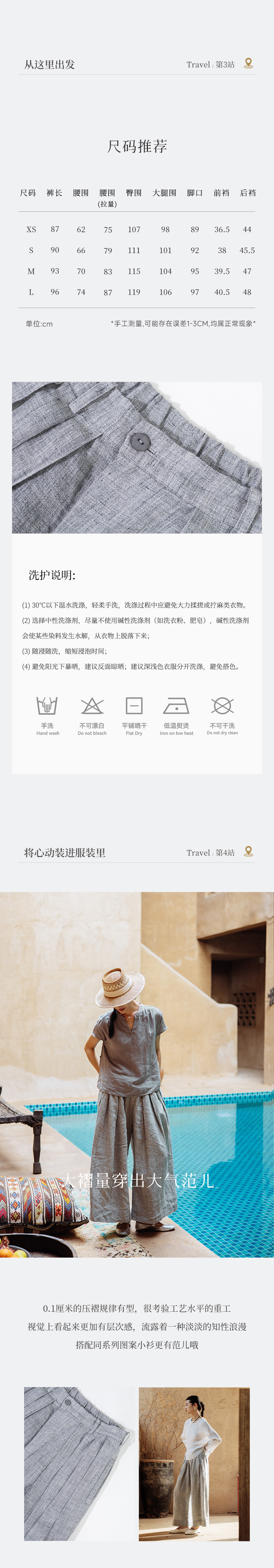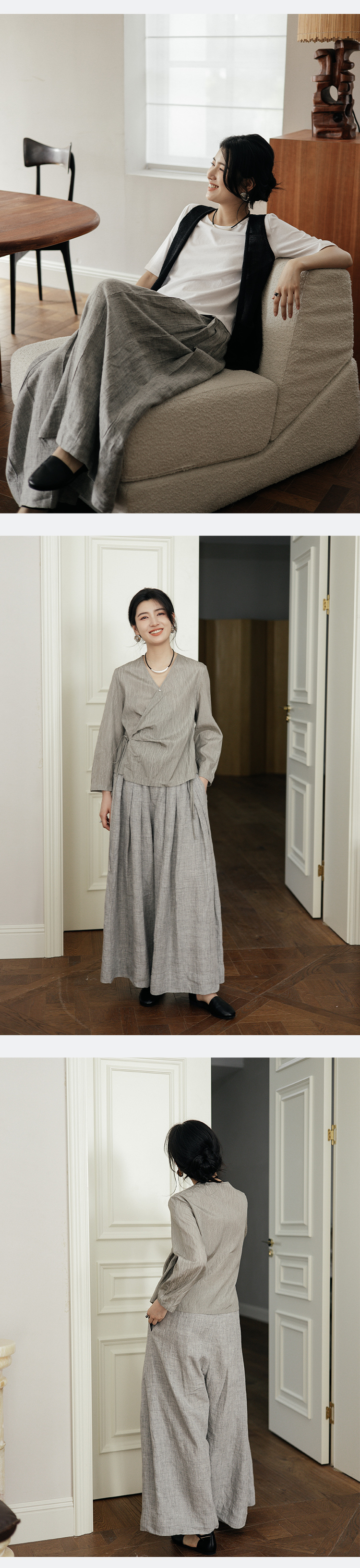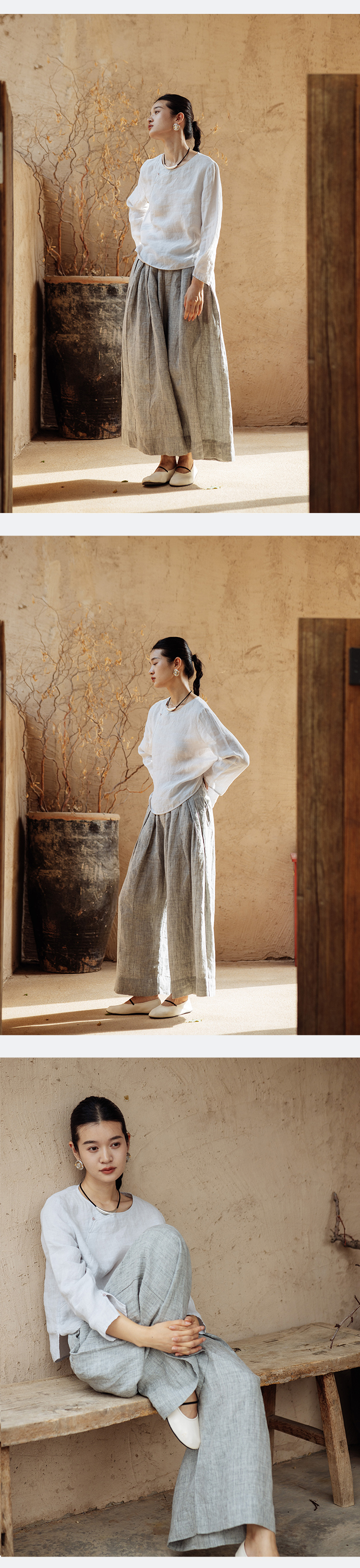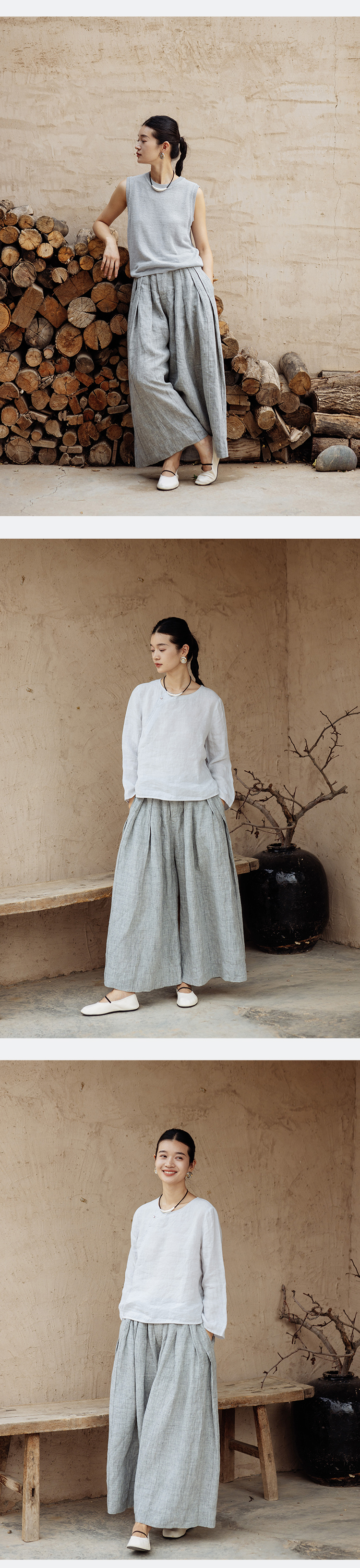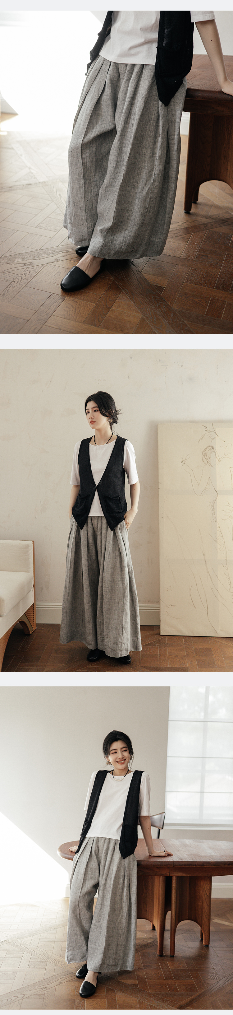 绽放343朵【黑白灰系列·灰武士】色织亚麻休闲裤宽松阔腿裤