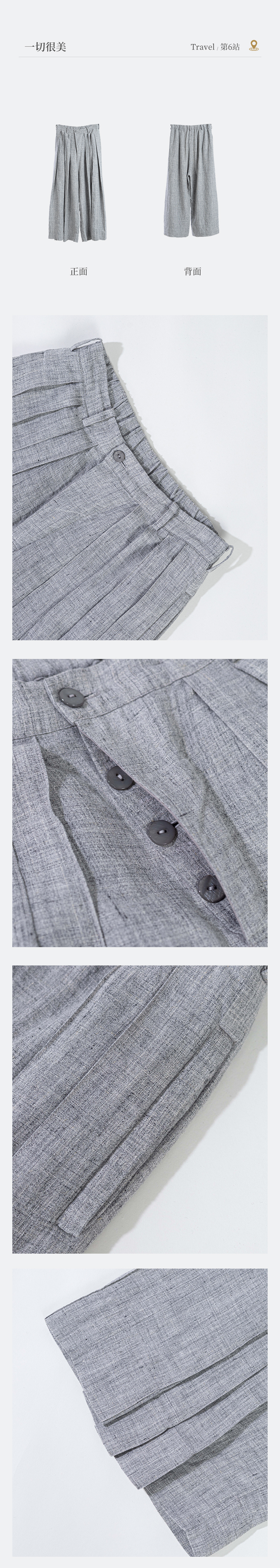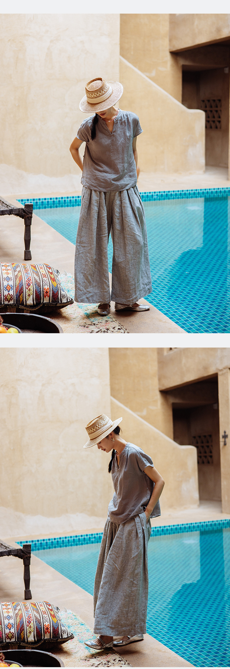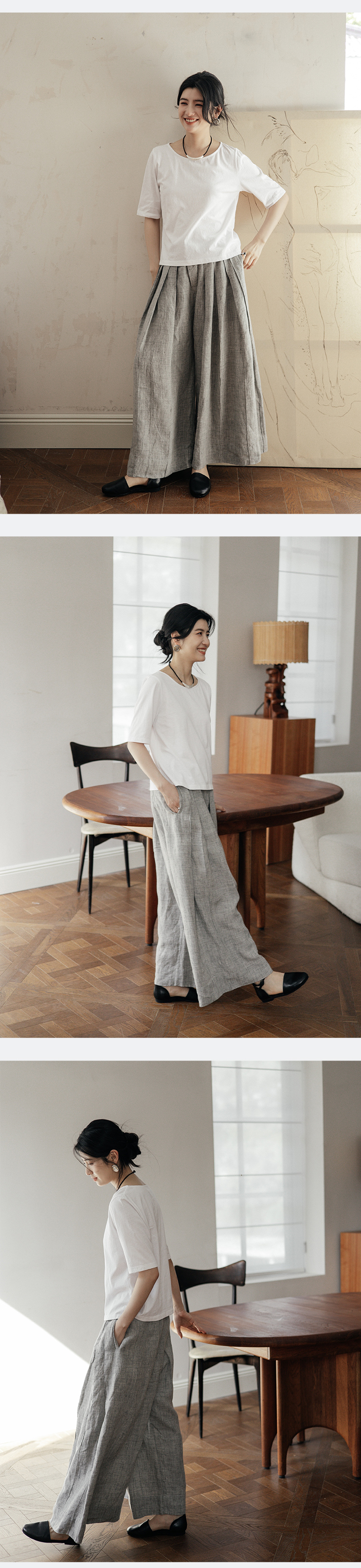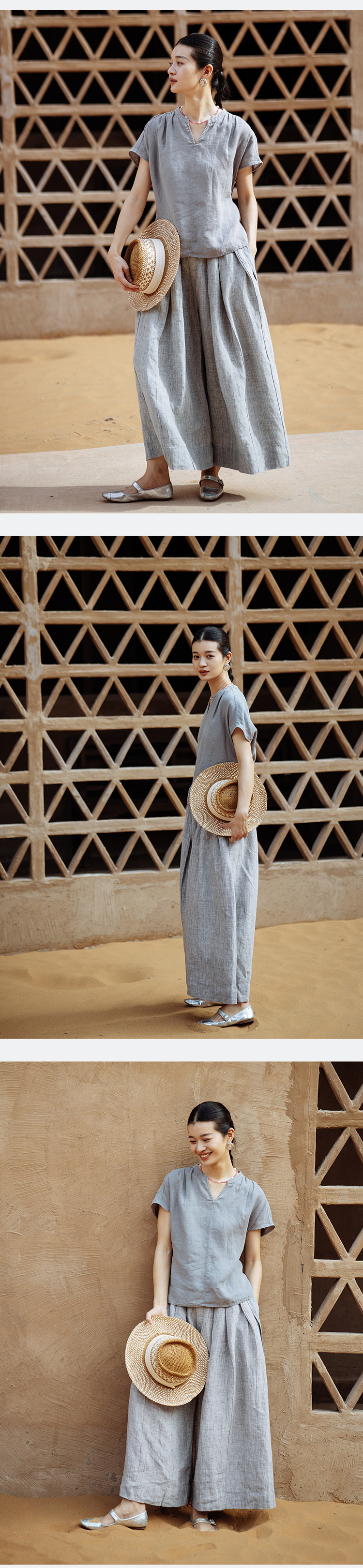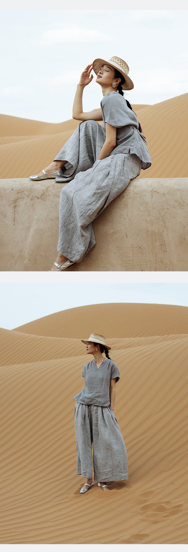 绽放343朵【黑白灰系列·灰武士】色织亚麻休闲裤宽松阔腿裤