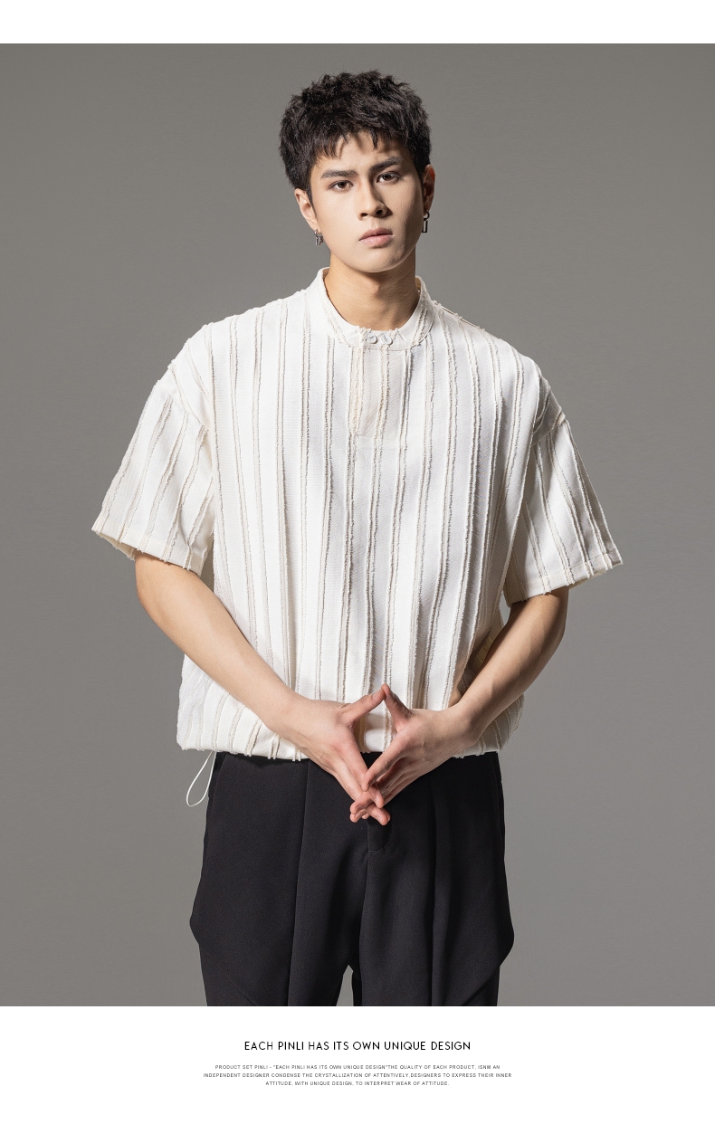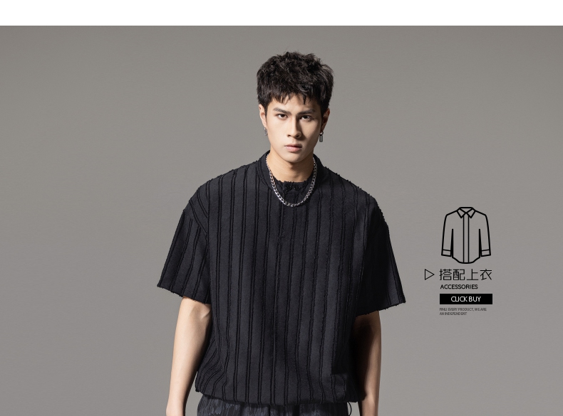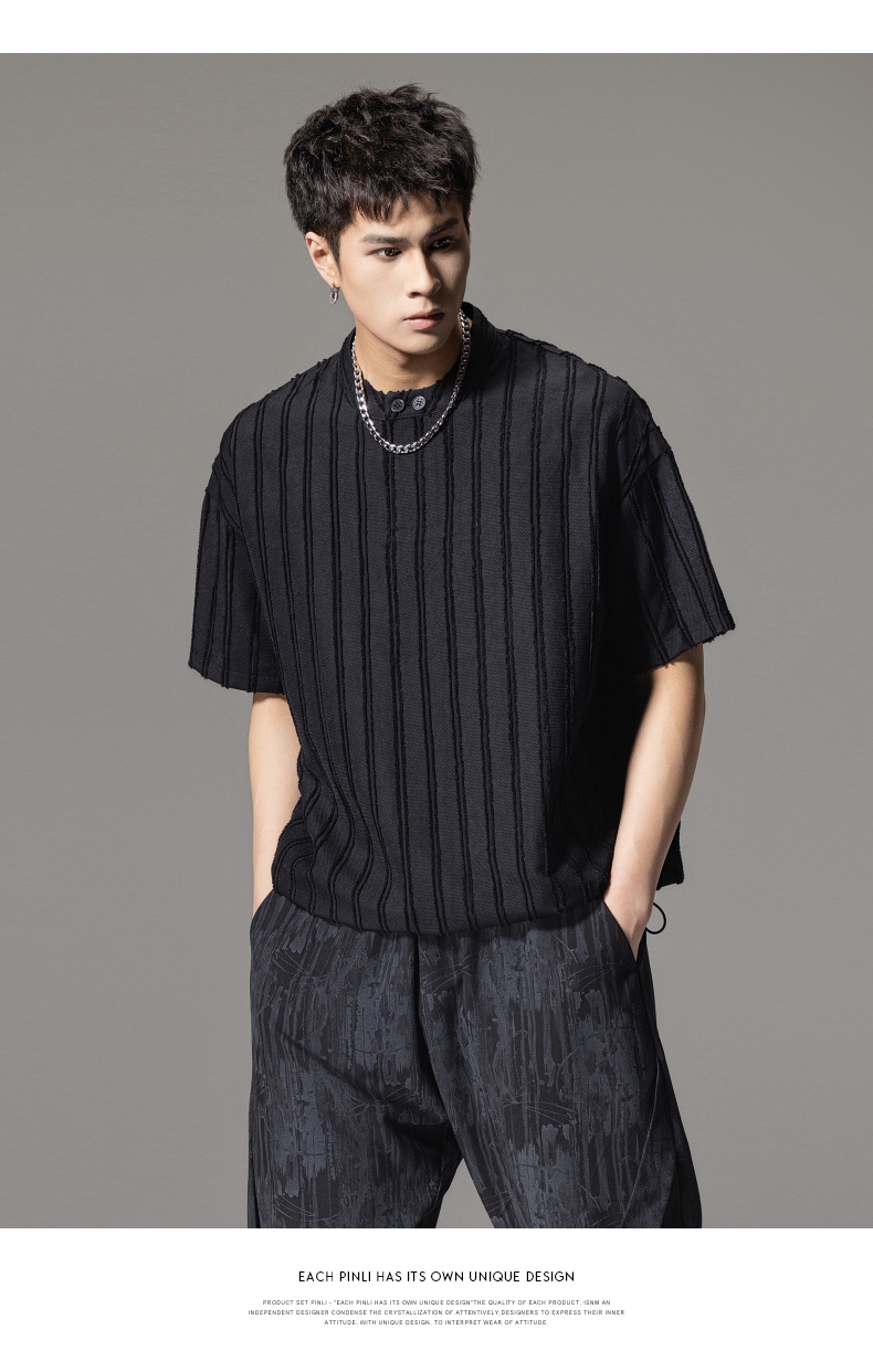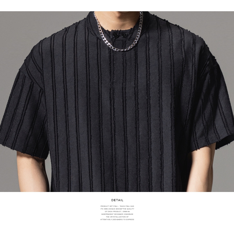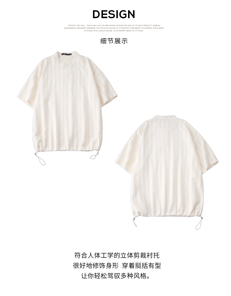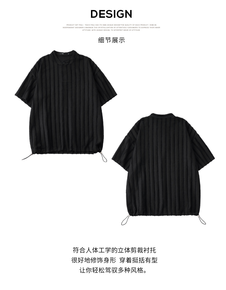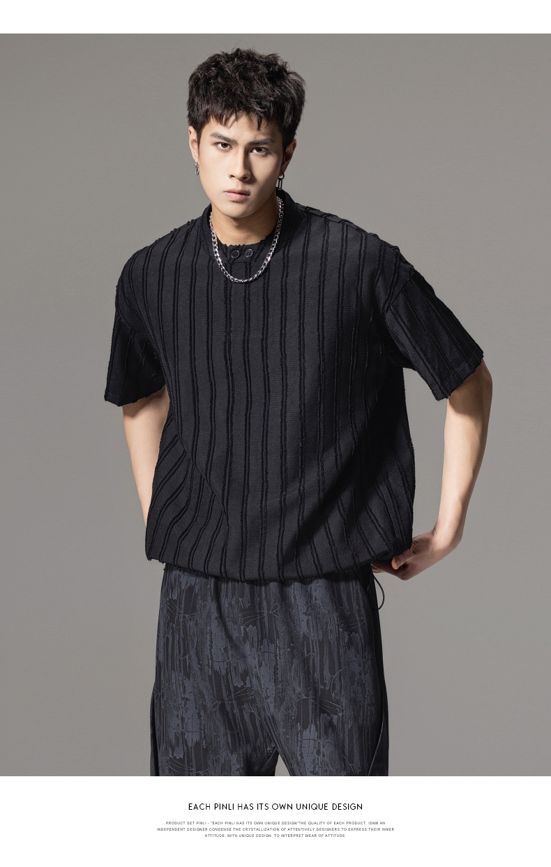 PINLI品立夏季新款纯色竖纹肌理短袖T恤男士潮牌宽松休闲体恤B242111010