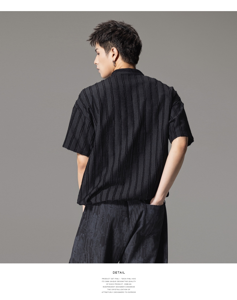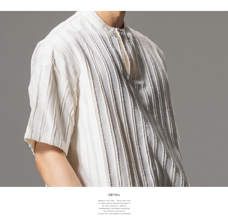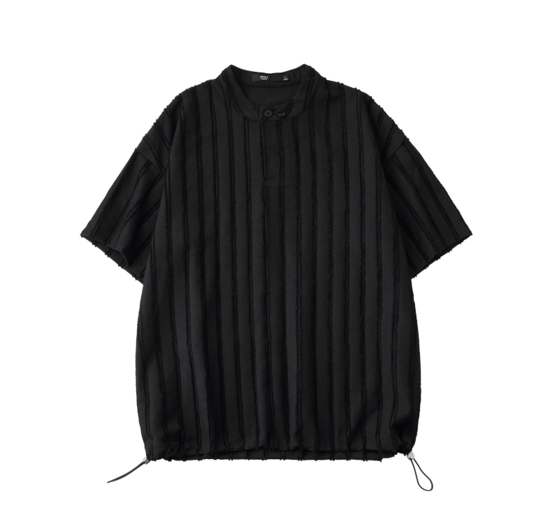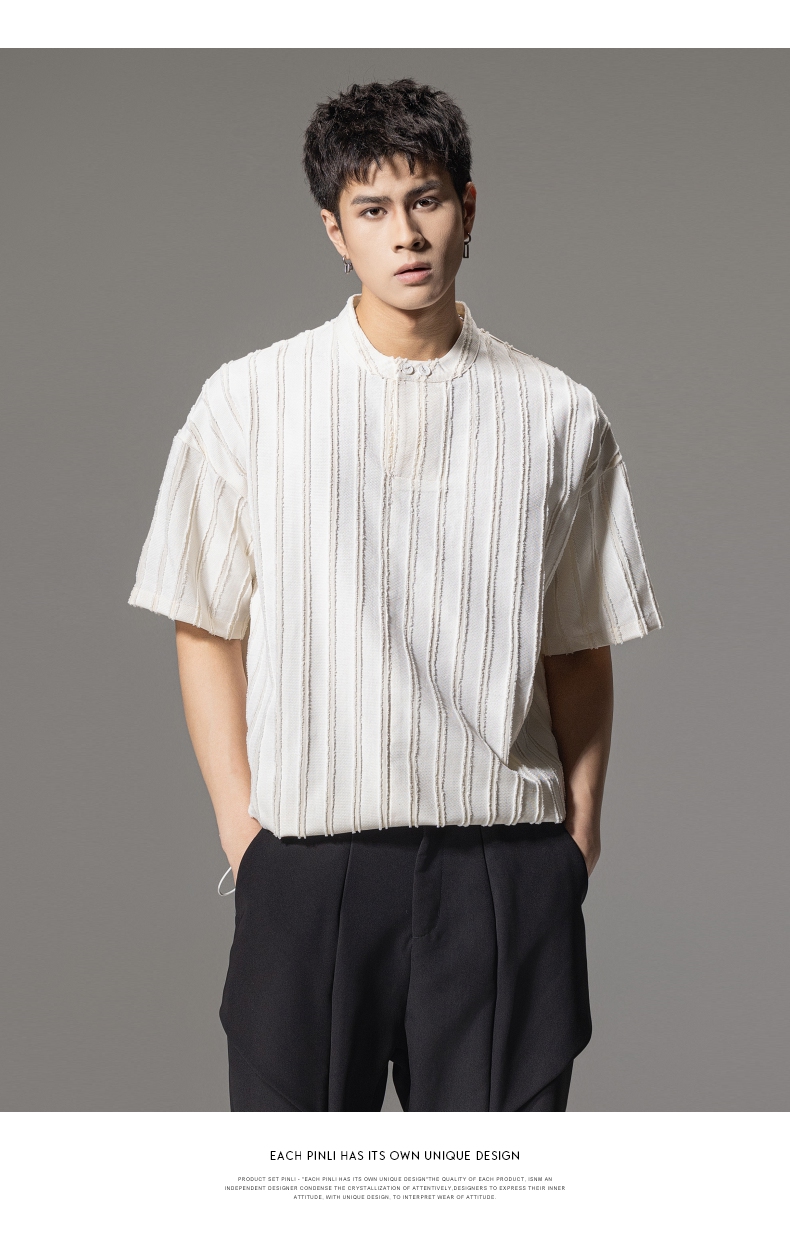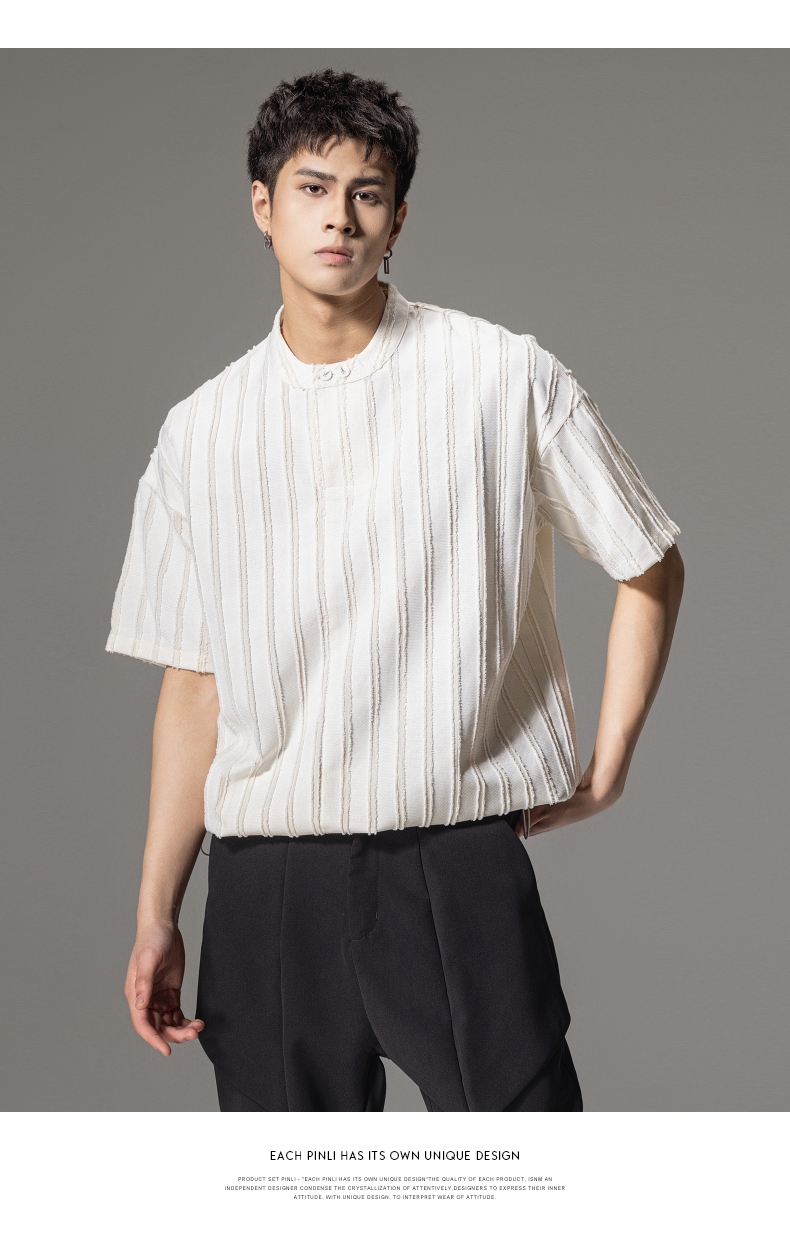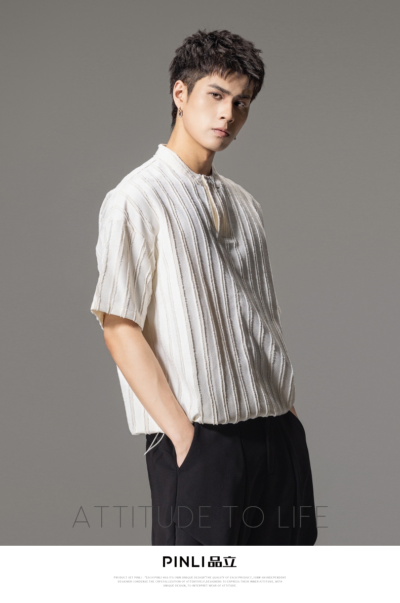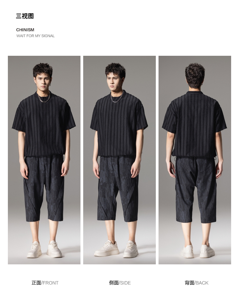 PINLI品立夏季新款纯色竖纹肌理短袖T恤男士潮牌宽松休闲体恤B242111010