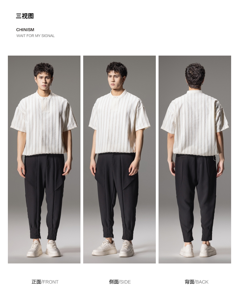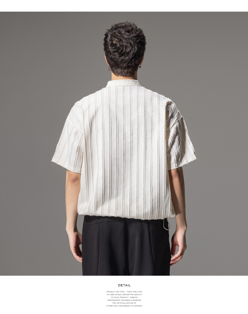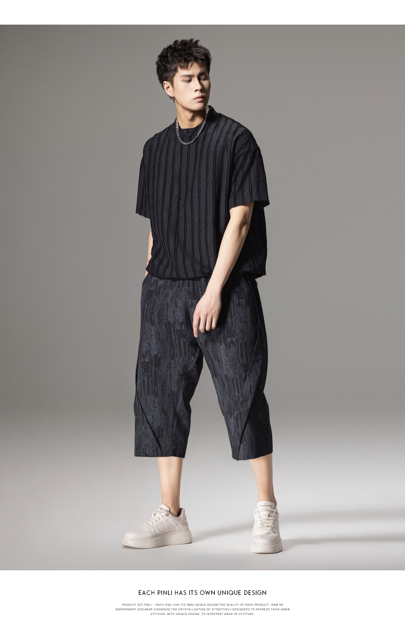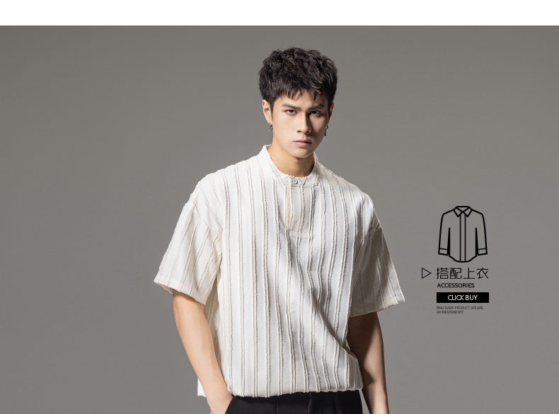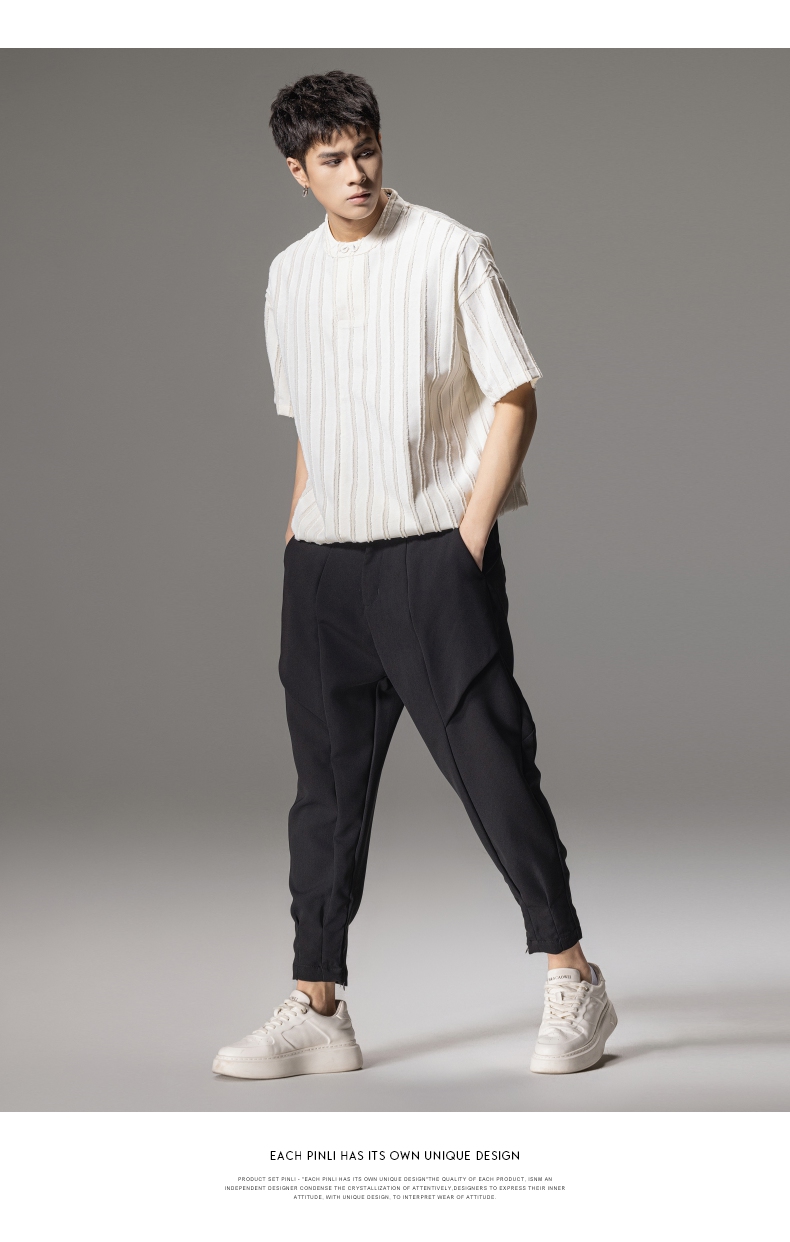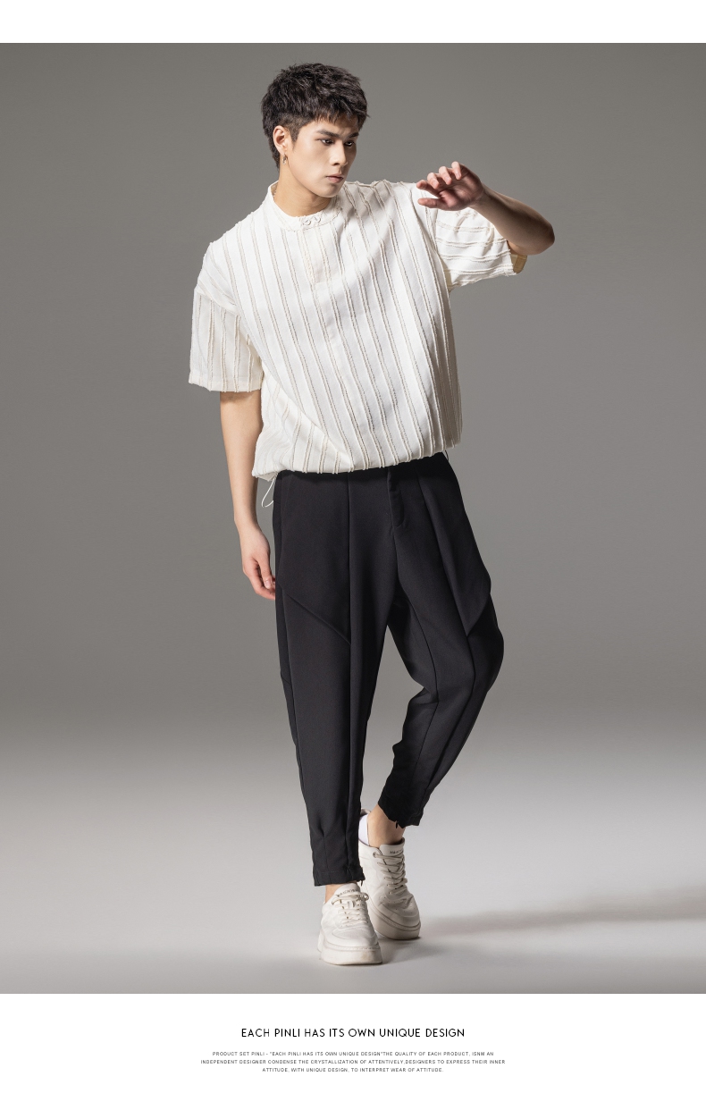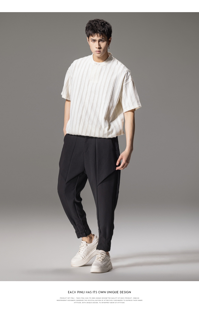 PINLI品立夏季新款纯色竖纹肌理短袖T恤男士潮牌宽松休闲体恤B242111010