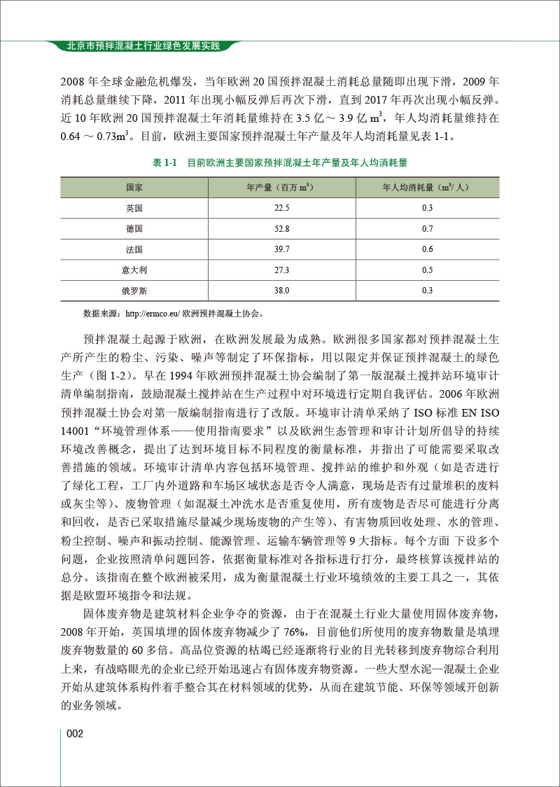 《北京市预拌混凝土行业绿色发展实践》编写组从国内外预拌混凝土绿色发展实践、