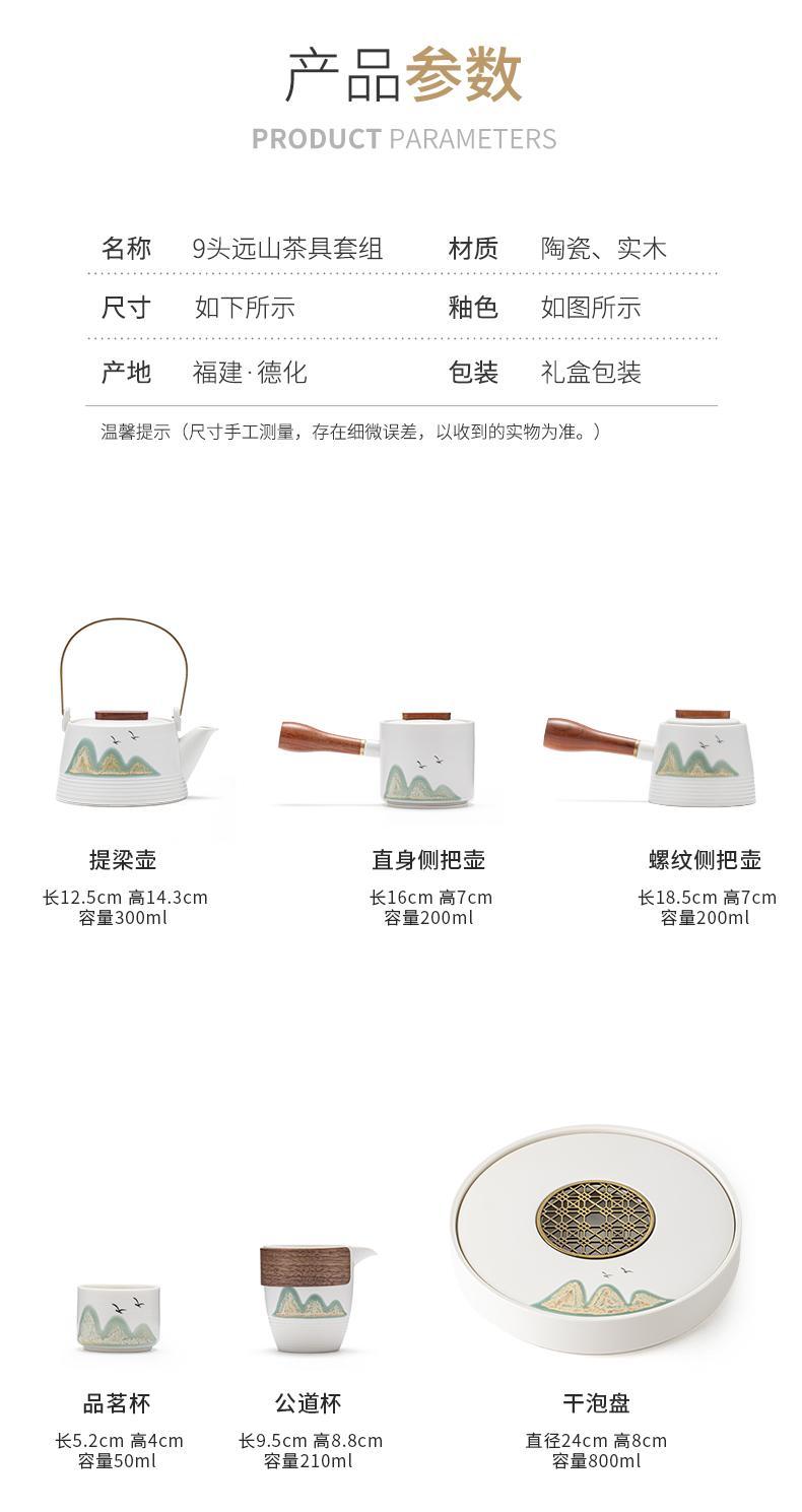 远山陶瓷功夫茶具套装家用现代简约办公室整套日式茶壶茶杯礼盒装