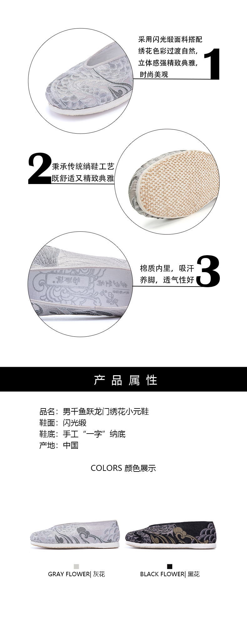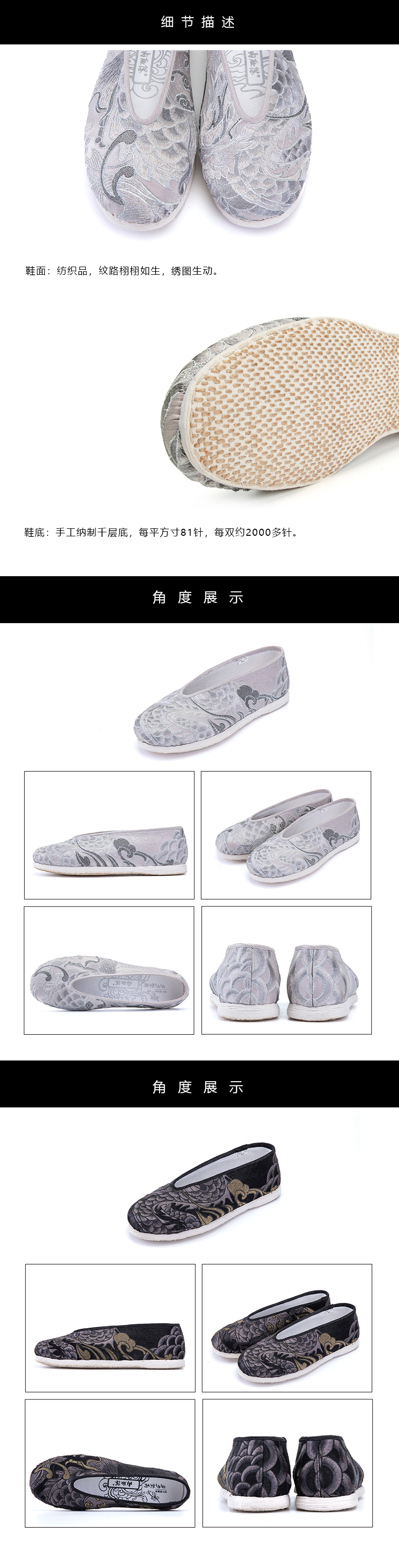 内联升男鞋手工单鞋千层底鱼跃龙门绣花小元口鞋8541A