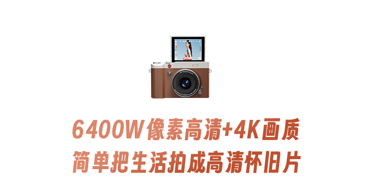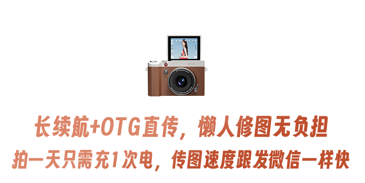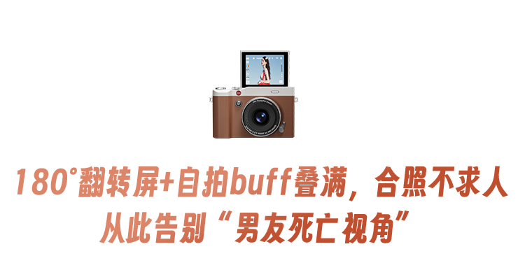 机身仅巴掌大小,180°翻转屏,自拍不求人;按键简洁,上手就会用。带它出游,比一瓶防晒霜还要轻!