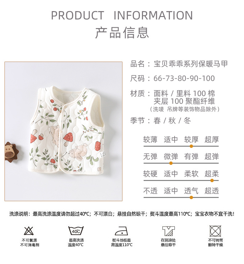 【婴儿三层夹棉保暖马甲】春秋冬外穿新生儿背心儿童马夹男女宝宝坎肩