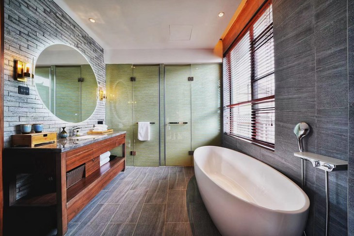 房间带一个大露台,是一间很适合情侣入住的房间,网红浴缸配上大露台。窗边的景色也显得入眼了许多。