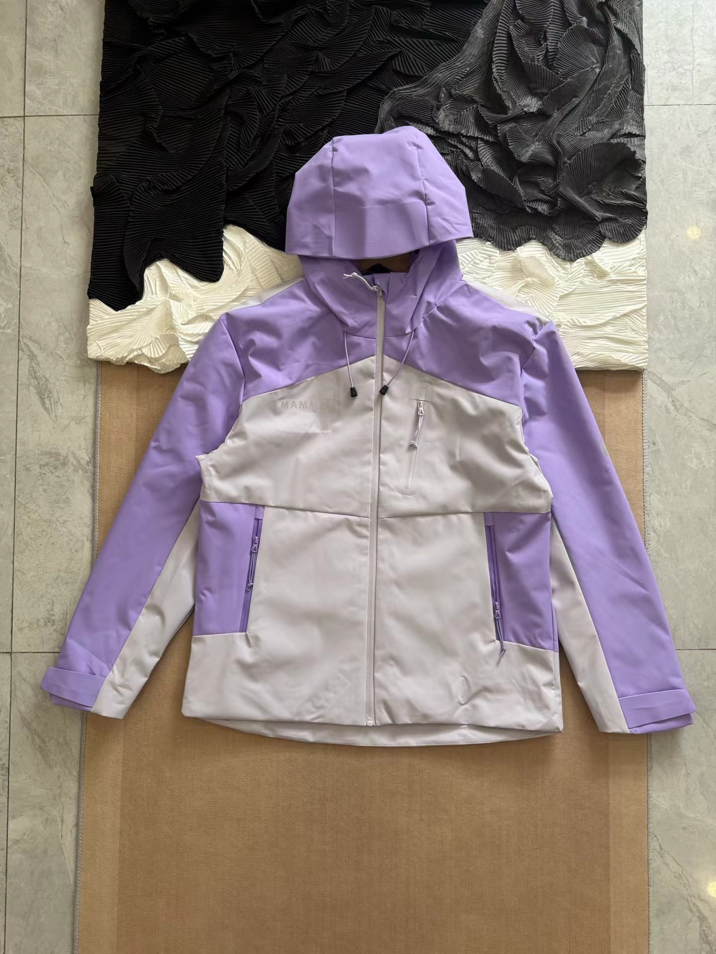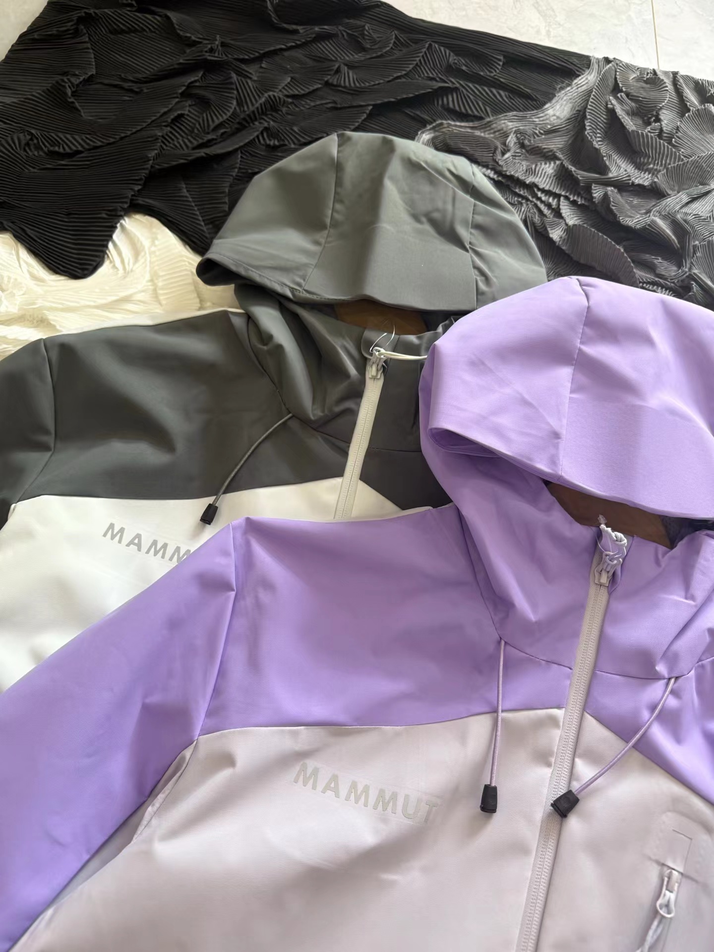 女款拼接色块连帽软壳冲锋衣 | 轻薄防风防泼水透气户外夹克c这款软壳冲锋衣是春夏秋户外&城市穿搭神器,采用高弹防泼水面料+轻薄软壳工艺,轻盈不臃肿、防风防小雨同时保持ji佳透气性,活动自由度拉满。拼接色块设计超有层次感,紫色/灰白配色活力又gao级,版型修身显瘦,帽檐可调节+袖口/下摆魔术贴收束,挡风不灌冷。jing典猛犸象LOGO胸前/袖口点缀,低调有质感,穿上就是街头运动风焦点,适合徒步、跑步、骑行、通勤、旅行多场景。实用细节满分:全拉链穿脱便捷,前胸/侧袋拉链口袋收纳手机钥匙;下摆抽绳调节贴合身形;内里亲肤网布不粘身,耐磨抗起球,洗后快干不变形。颜色清新不撞衫,紫色甜美少女,灰白gao级百搭,女生专属剪裁,显瘦又显气质。