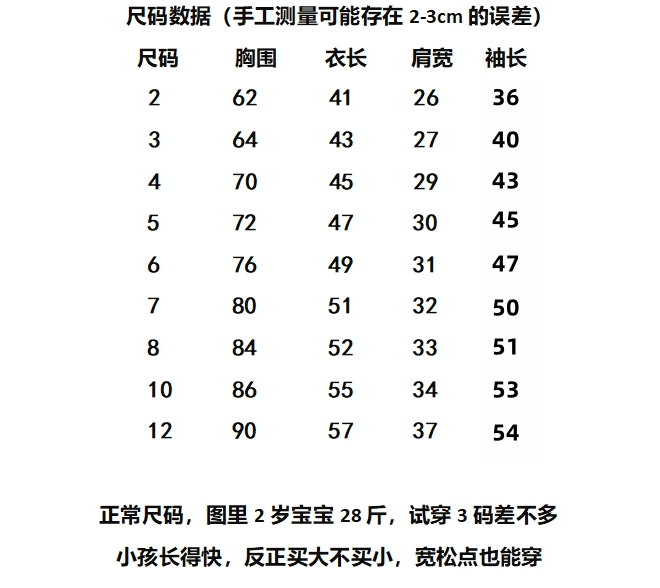 尺码大差不大,不同款式可能有的衣长袖长稍微长个2cm,建议都按身高来选哈,偏胖的宝就选大一码