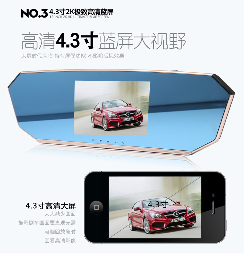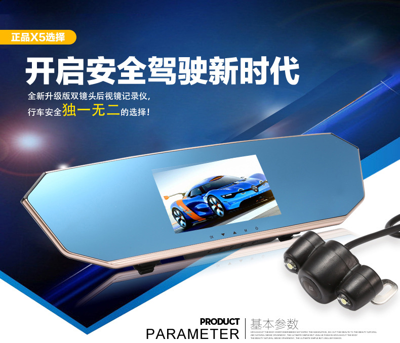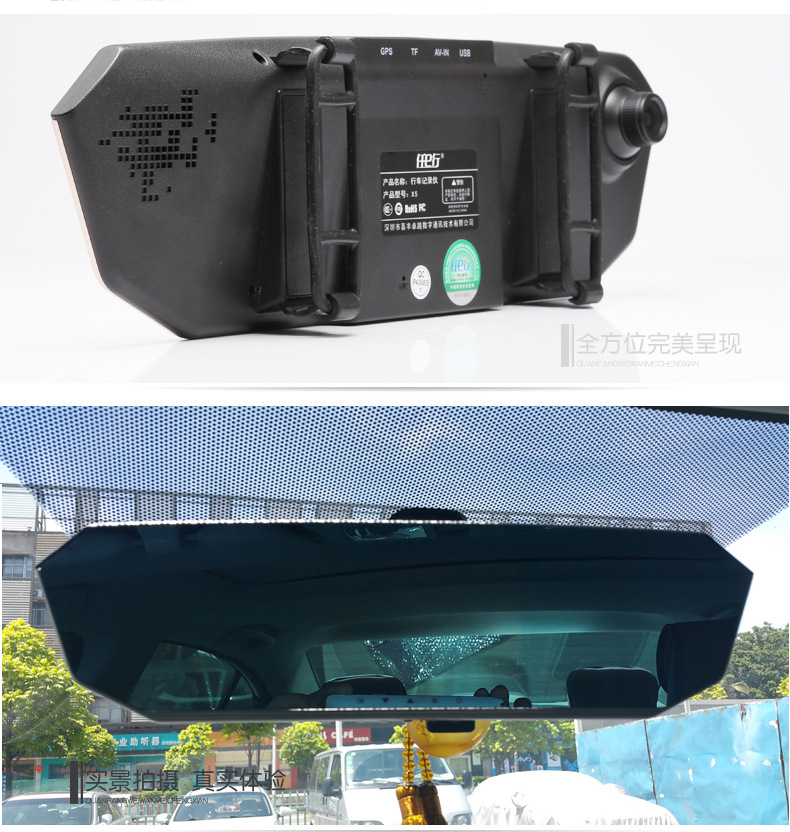 【 监控摄像】。任E行X5后视镜双镜头行车记录仪高清夜视监控一体机
