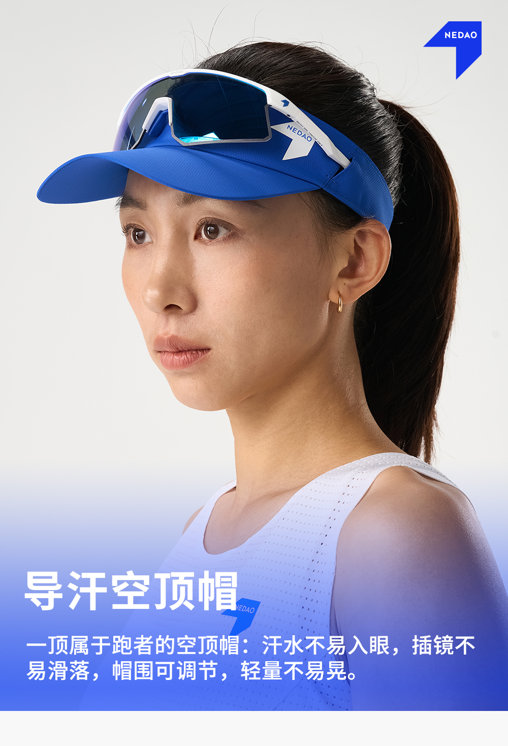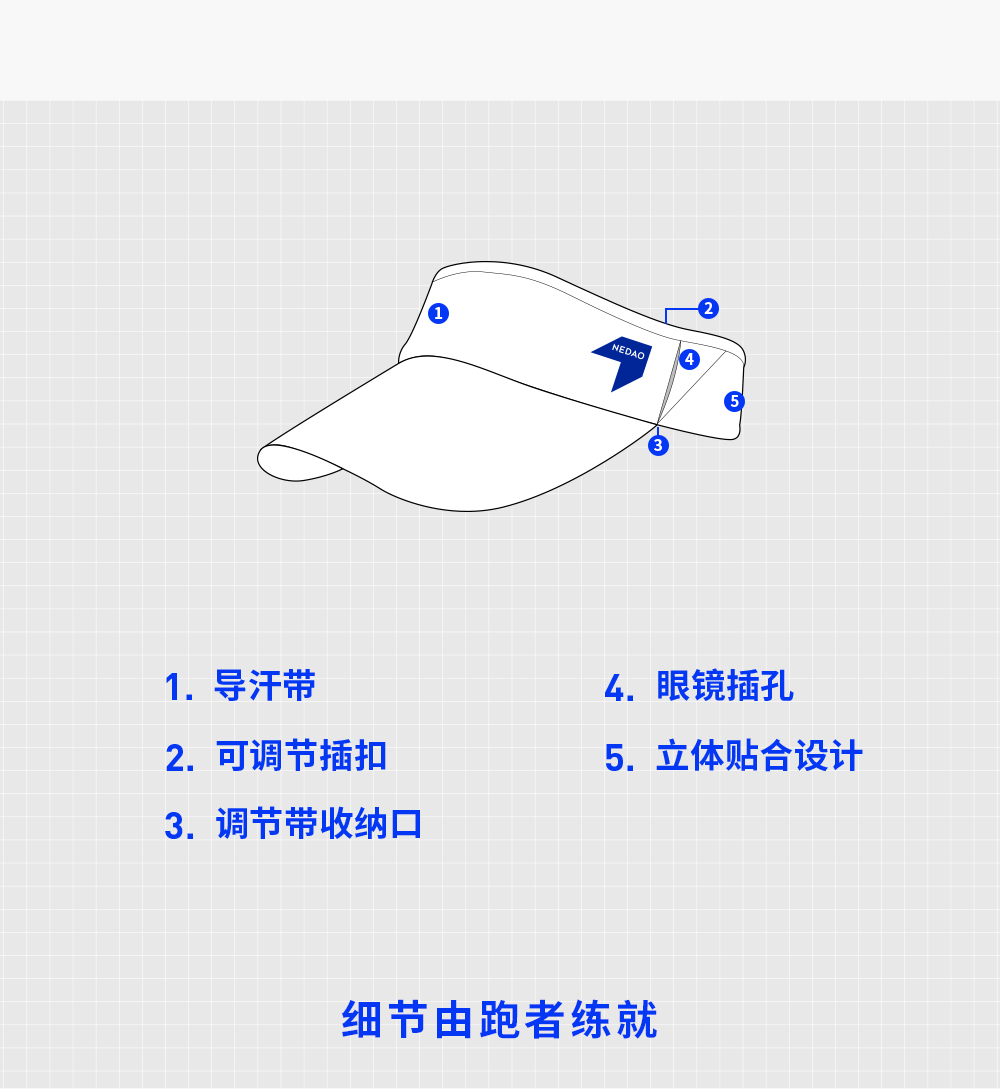 NEDAO内道轻量空顶帽夏季跑步速干调节扣户外越野马拉松跑步运动帽