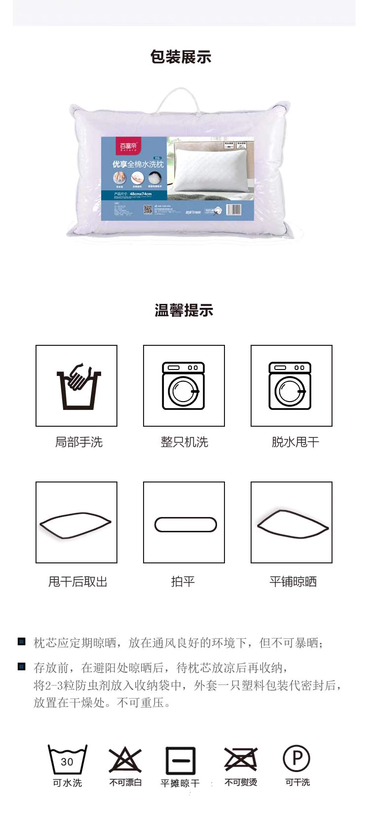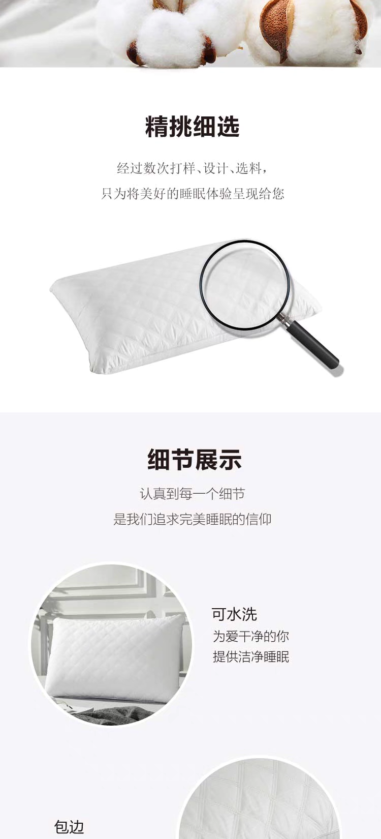 百富帝优享全棉水洗枕头枕芯护颈枕家用单人透气蓬松羽丝绒侧睡