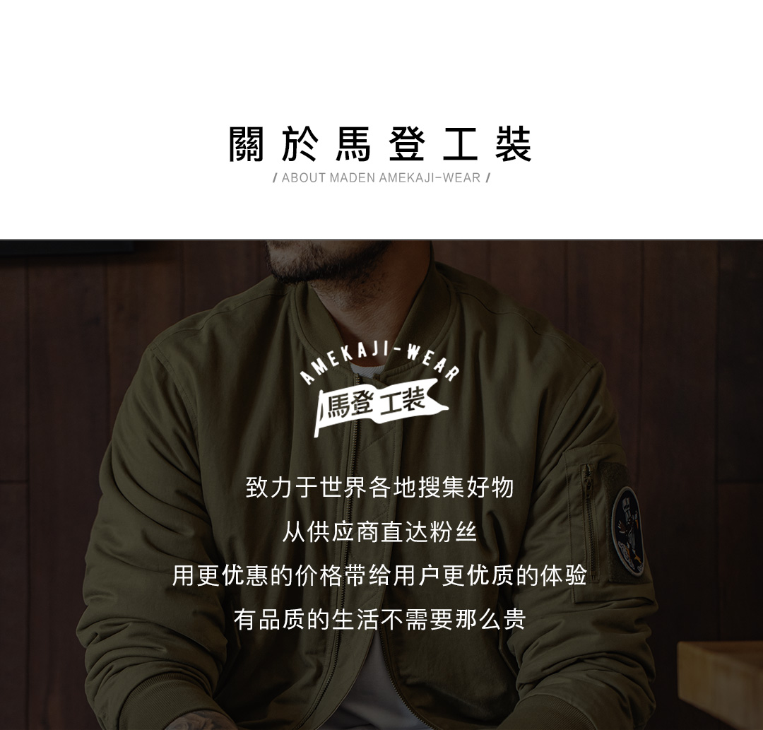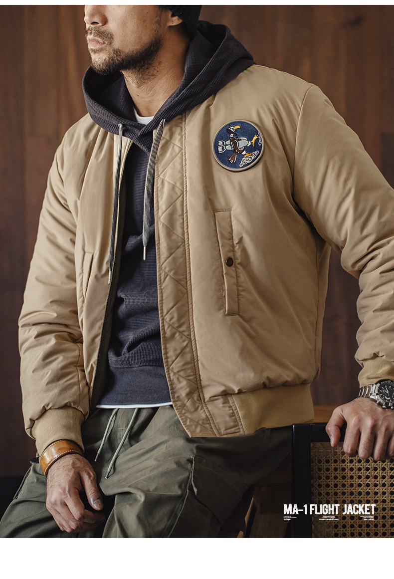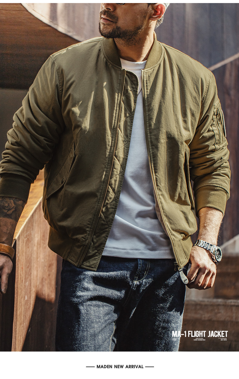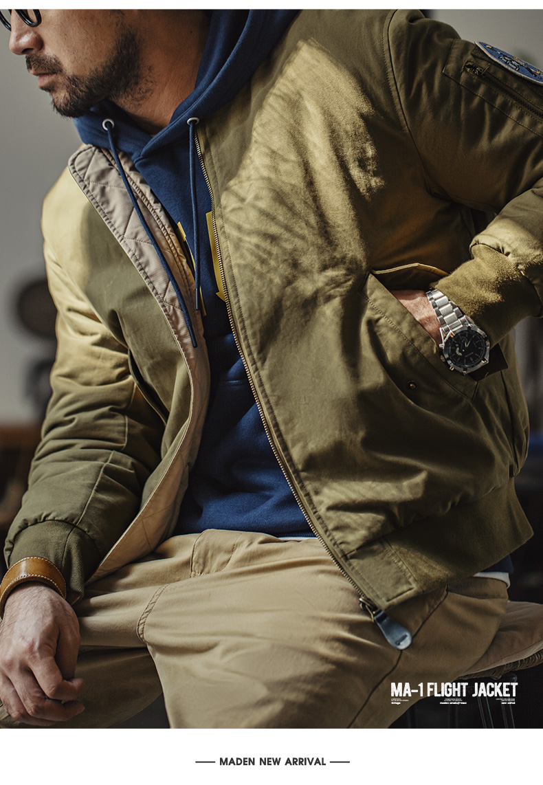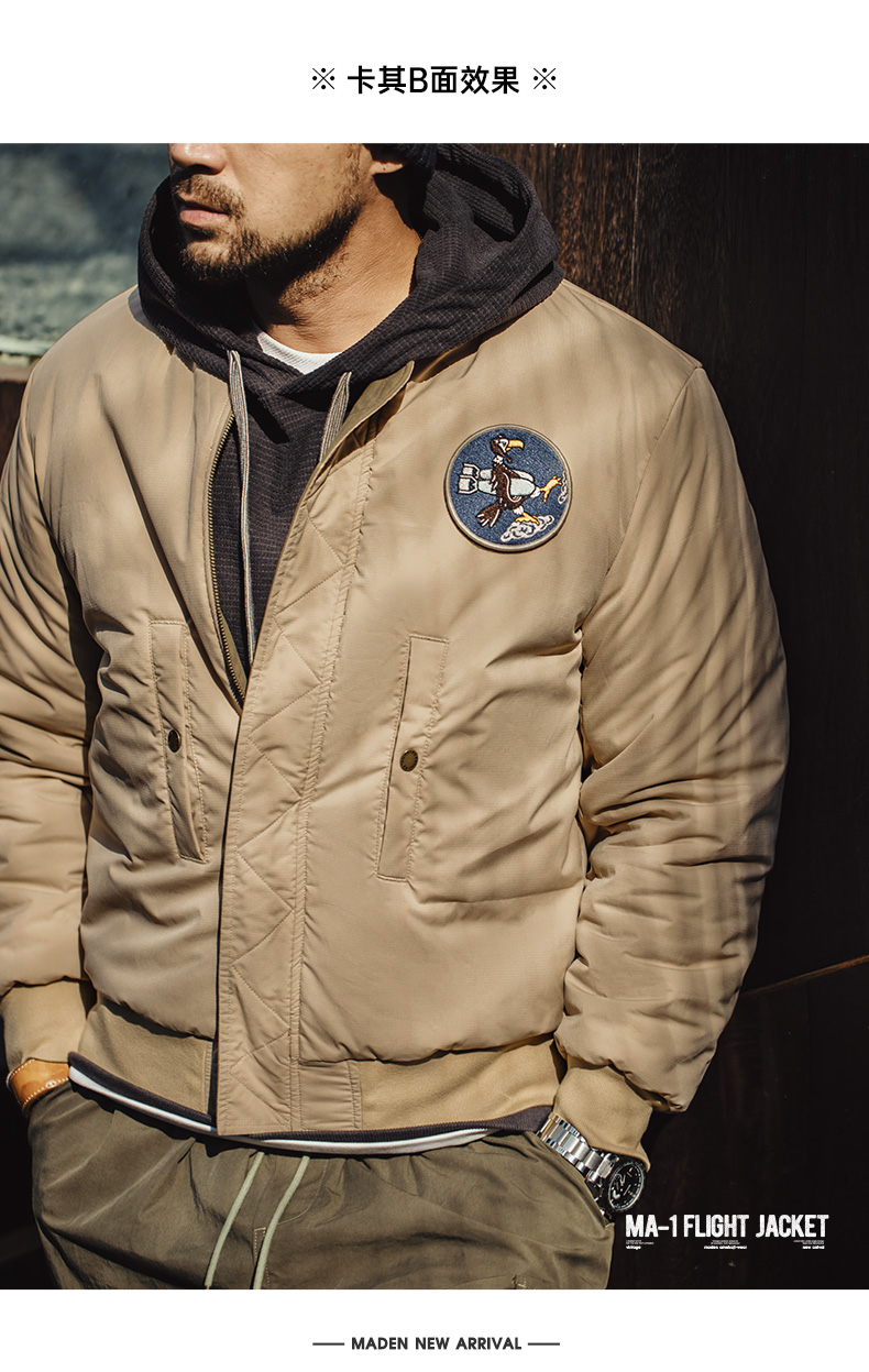 工装优选 美式复古双面穿MA1飞行员夹克棉服夹棉棒球服外套男秋冬