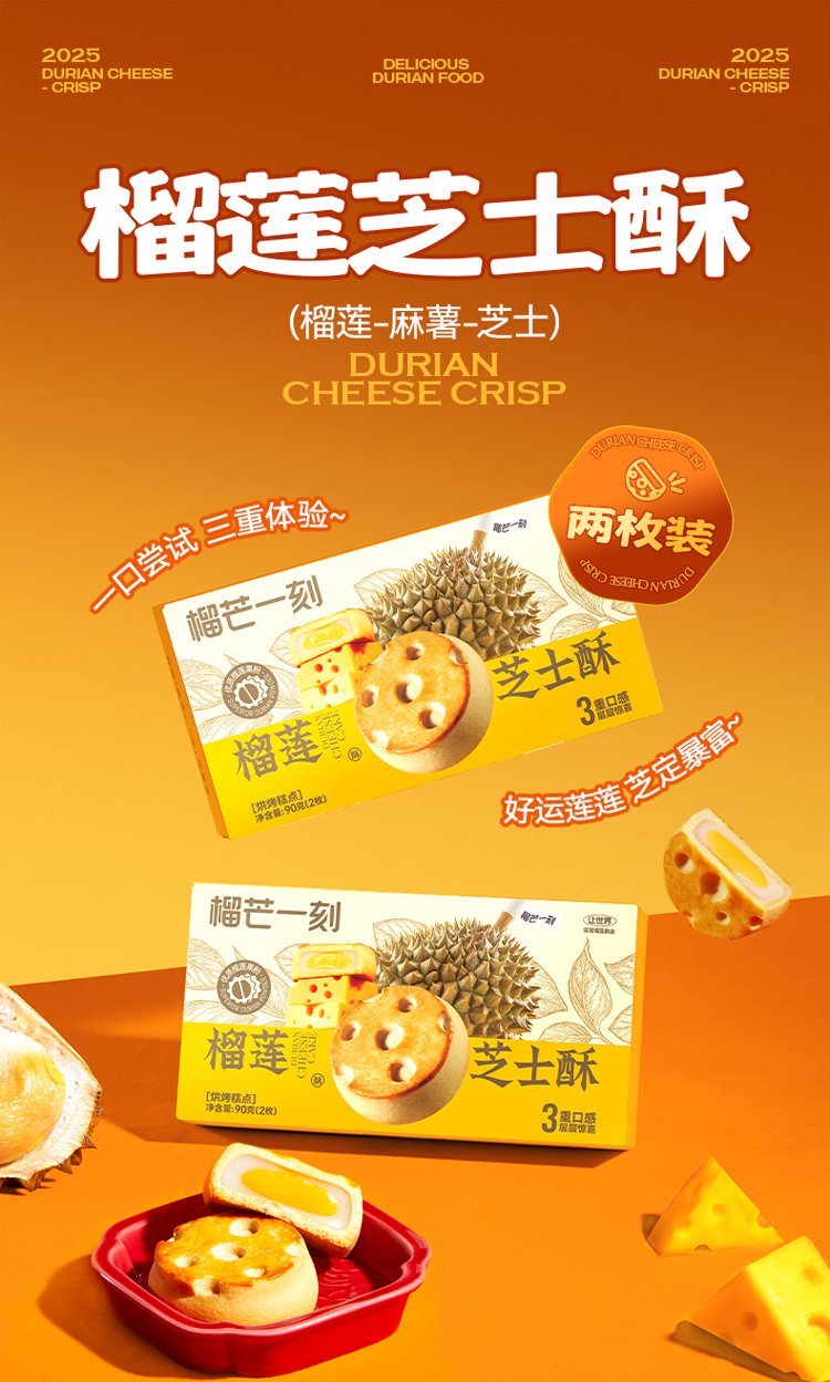 【轻量2枚装】榴莲芝士酥90克(45g*2枚)/盒 酥脆饼皮+Q弹麻薯+香醇芝士内馅三重美味口感HY