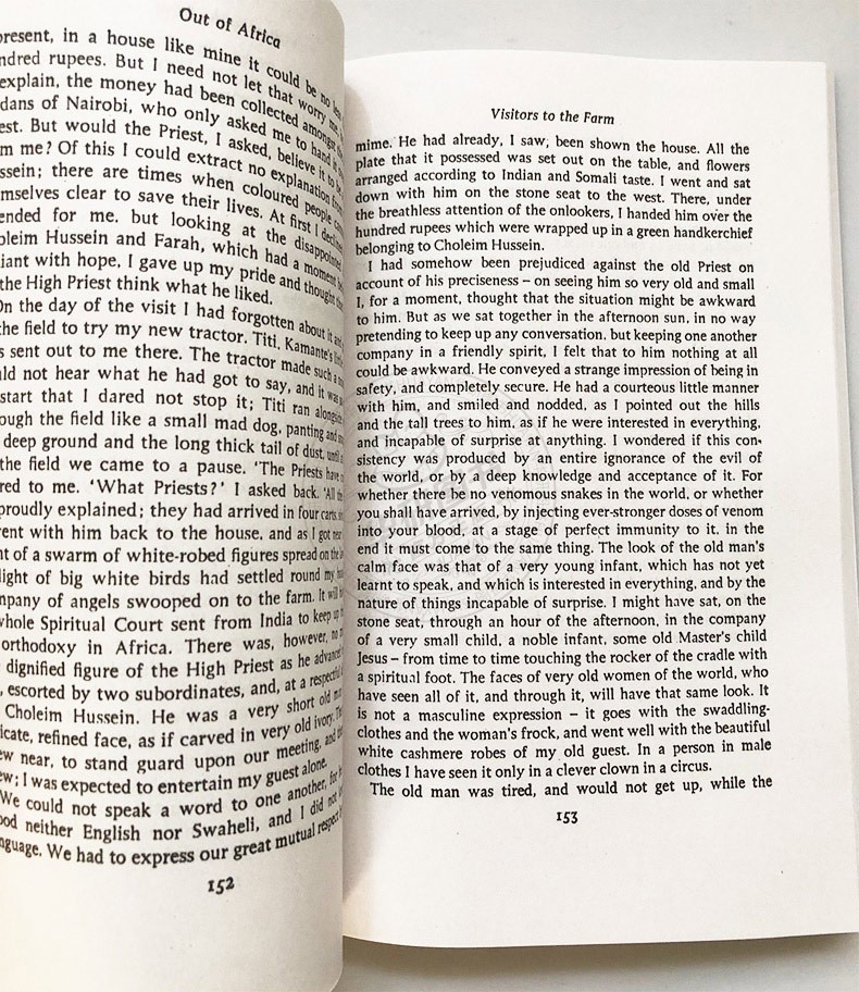 I had a farm in Africa, at the foot of the Ngong Hills. The Equator runs across these highlands, a hundred miles to the north, and the farm lay at an altitude of over six thousand feet. In the daytime you felt that you had got high up; near to the sun, but the early mornings and evenings were limpid and restful, and the nights were cold.