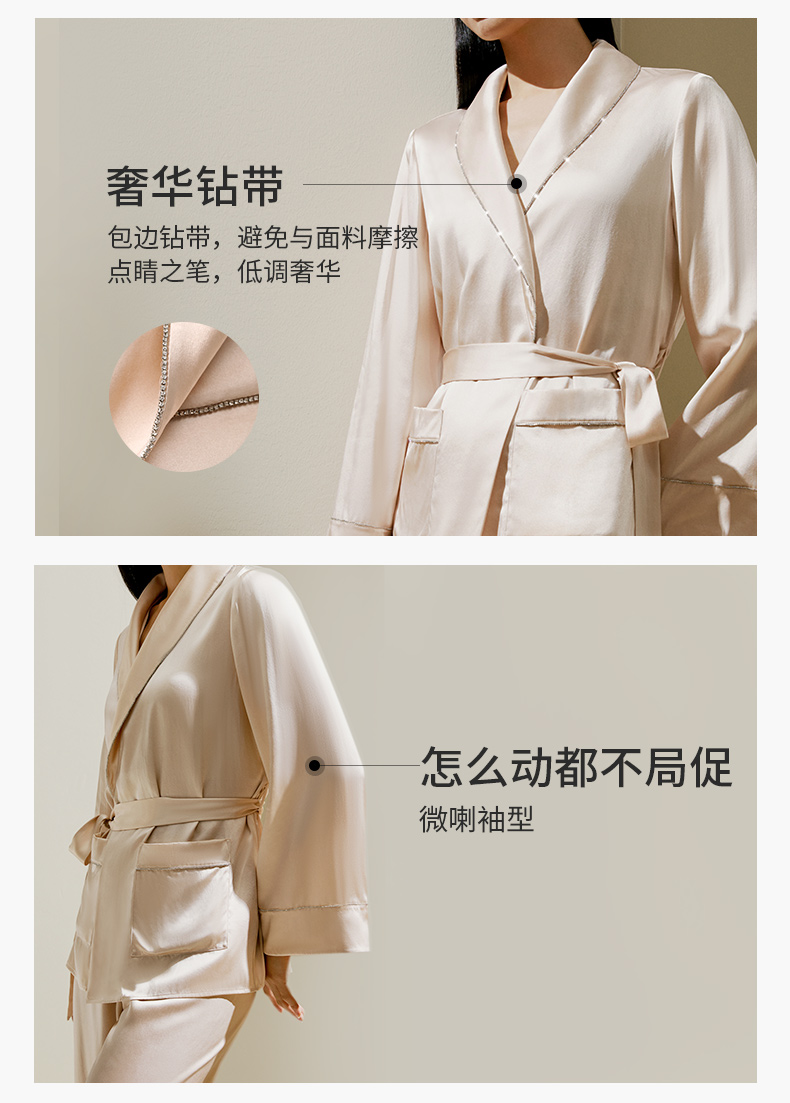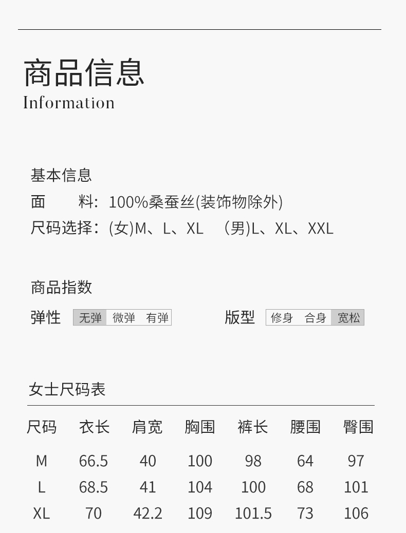 【奢华之选】金三塔25姆米100%桑蚕丝情侣真丝睡衣男女家居服套送礼 YSFDC208/YSMDC201