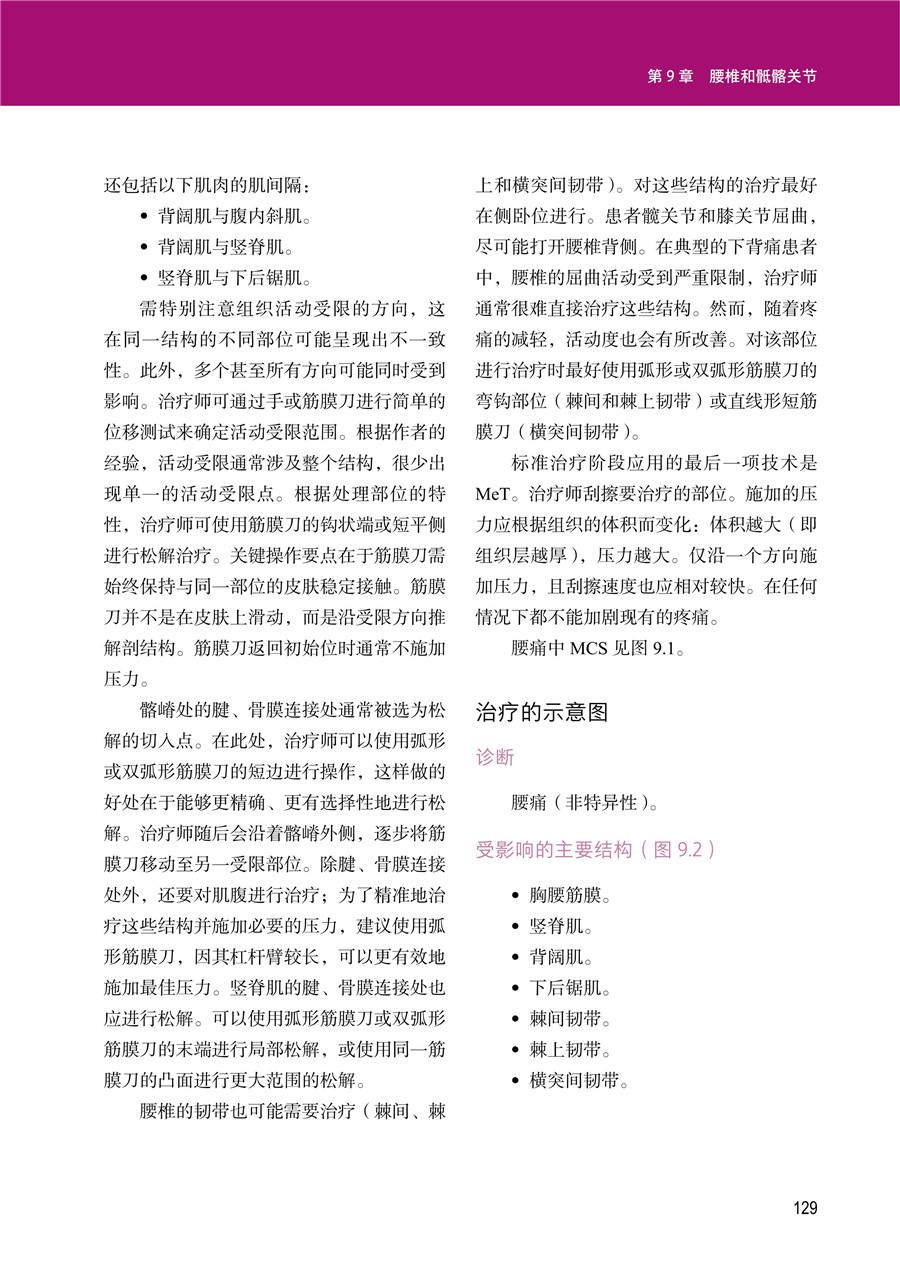 第一部分 循证实践第 1 章 肌筋膜系统第 2 章 器械辅助软组织松解术:理论第 3 章 筋膜刀疗法:实践操作第 4 章 筋膜刀疗法:在临床实践中的整合应用第二部分 筋膜刀疗法的临床应用:上肢整体功能区域第 5 章 颈椎和头部第 6 章 肩关节复合体第 7 章 肘、腕和手第三部分 筋膜刀疗法临床应用:下肢整体功能区域第 8 章 胸椎和胸部第 9 章 腰椎和骶髂关节第 10 章 髋关节、大腿、骨盆第 11 章 膝第 12 章 踝关节和足第四部分 筋膜刀疗法的临床应用:瘢痕和骨关节炎第 13 章 浅筋膜和皮肤的瘢痕第 14 章 深层瘢痕第 15 章 骨关节炎和慢性肌肉骨骼疼痛第五部分 案例研究和治疗方案第 16 章 肩关节损伤第 17 章 肘关节损伤第 18 章 非关节炎性髋关节损伤第 19 章 膝关节损伤第 20 章 踝关节损伤第 21 章 颈部损伤第 22 章 腰部损伤第六部分 治疗整合第 23 章 拔罐对 IAMT 的贡献第 24 章 运动贴扎对 IAMT 的贡献第 25 章 筋膜训练对 IAMT 的贡献第 26 章 IAMT 对儿童治疗的贡献