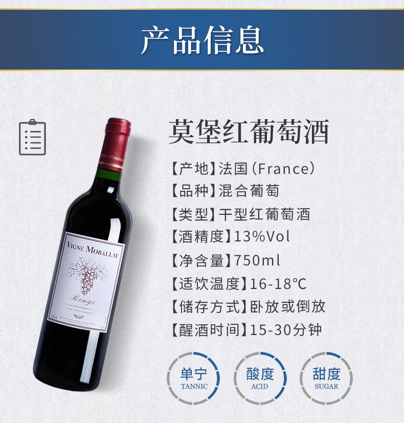 建发酒业 法国原瓶进口红酒 莫堡干红葡萄酒礼盒 13度750ml 果香细浓郁 红酒 750ml6瓶装(整箱装)