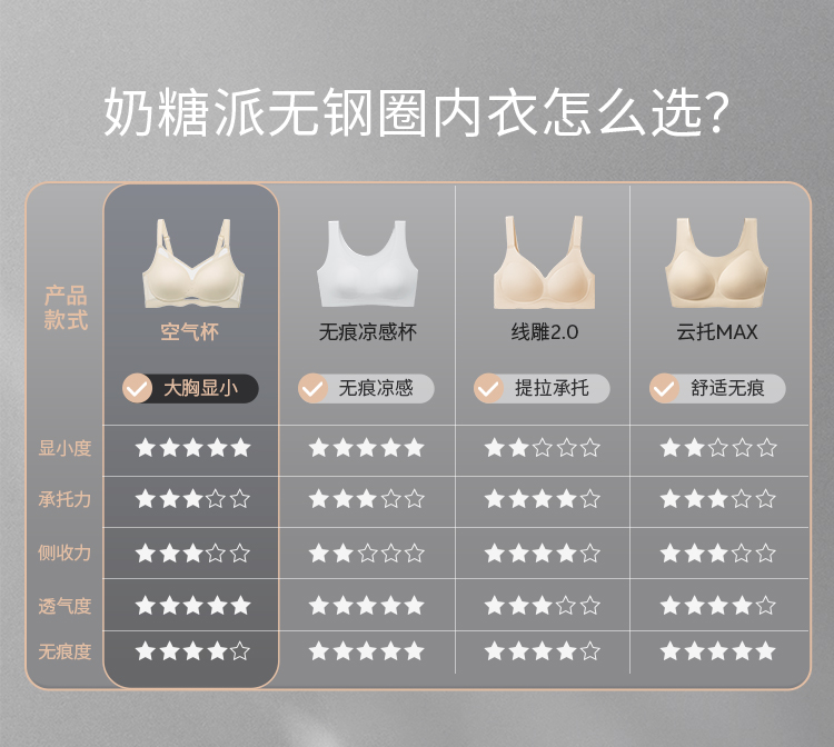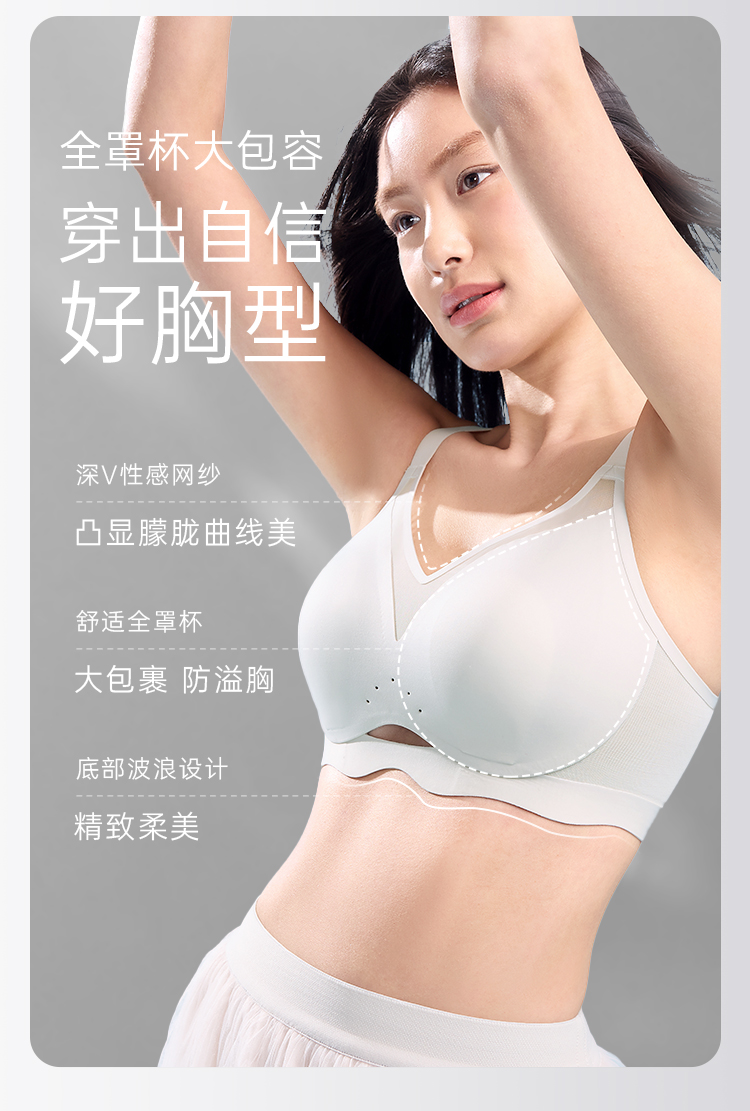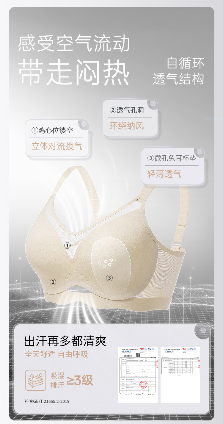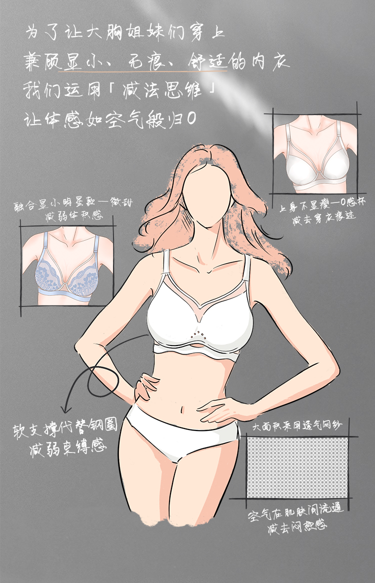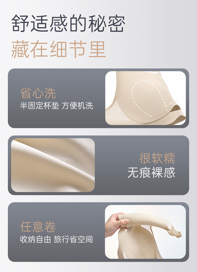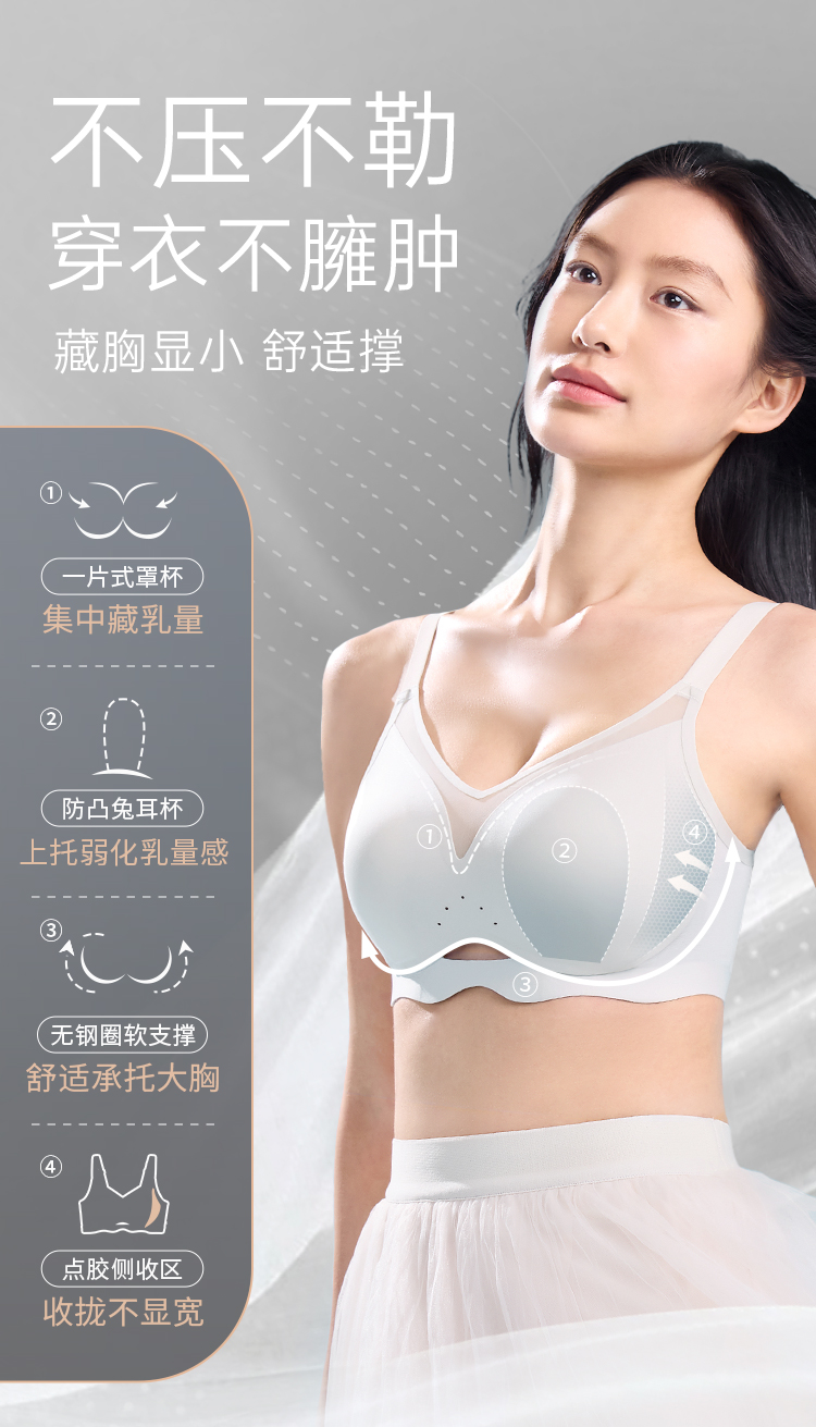 [空气杯]大胸显小无钢圈软支撑透气兔耳杯文胸无痕内衣胸罩