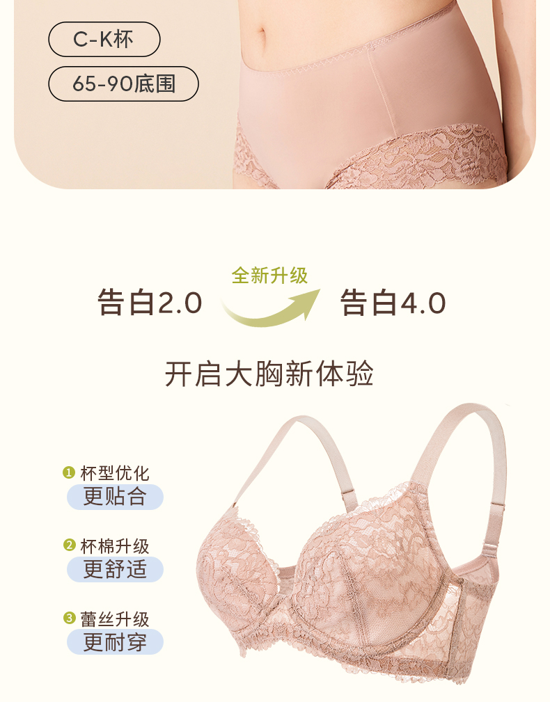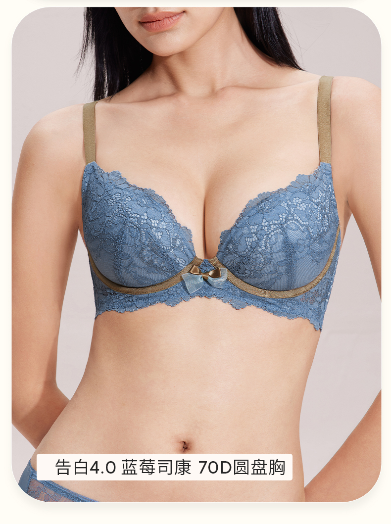 奶糖派大杯文胸告白分胸型4.0经典款撞色防下垂蕾丝上托大胸内衣 商品图1