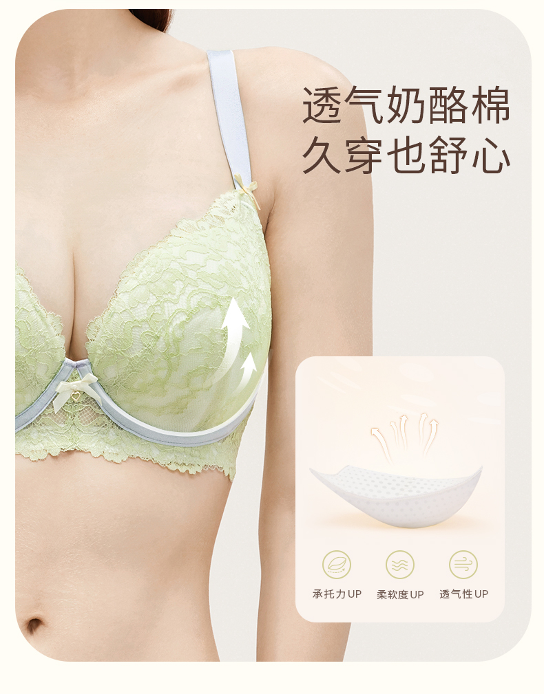 奶糖派大杯文胸告白分胸型4.0经典款撞色防下垂蕾丝上托大胸内衣