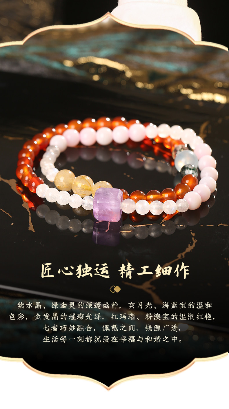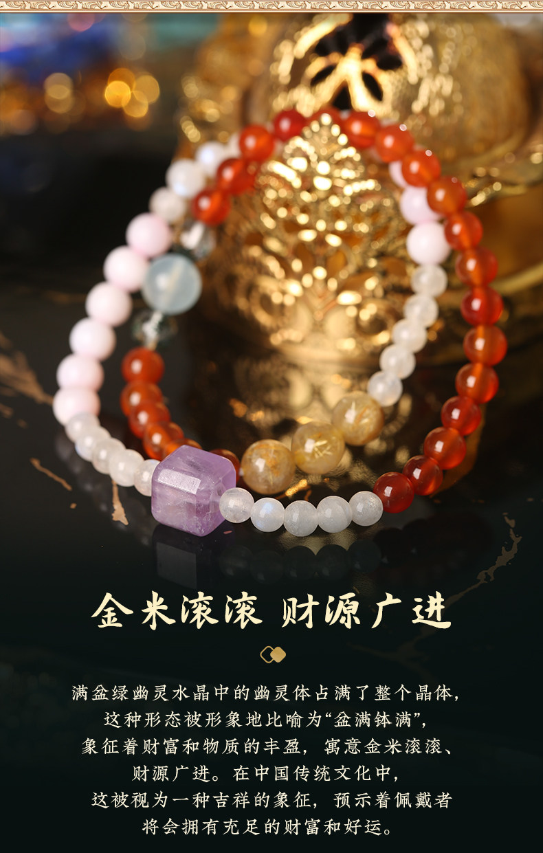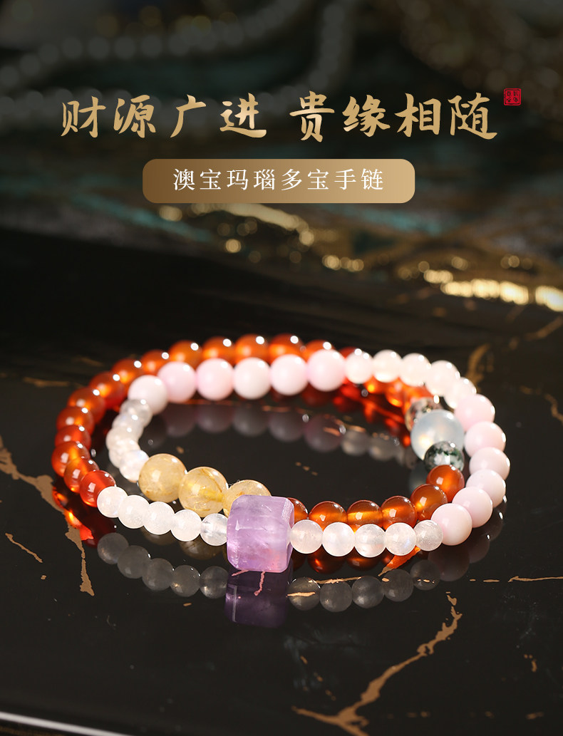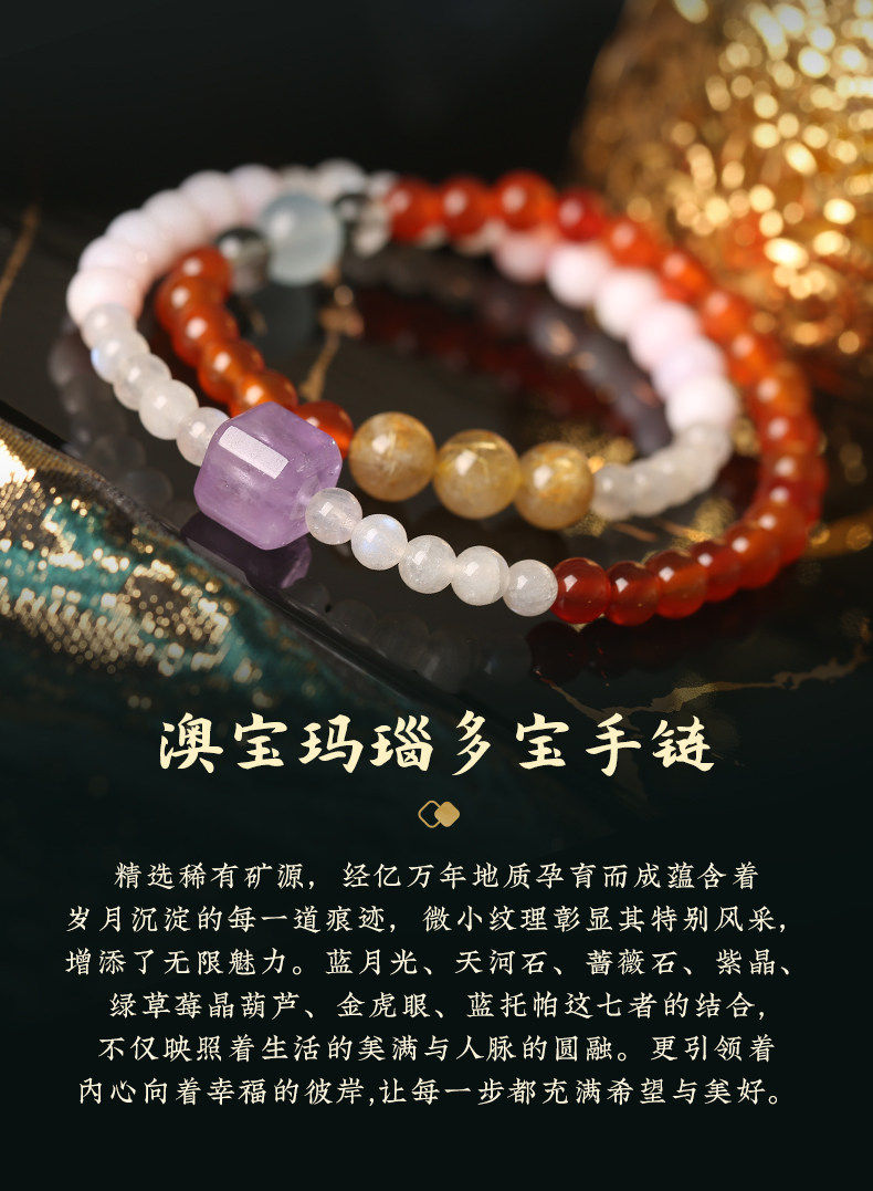 【祈愿吉品】澳宝玛瑙多宝手链灰月光金发晶手串