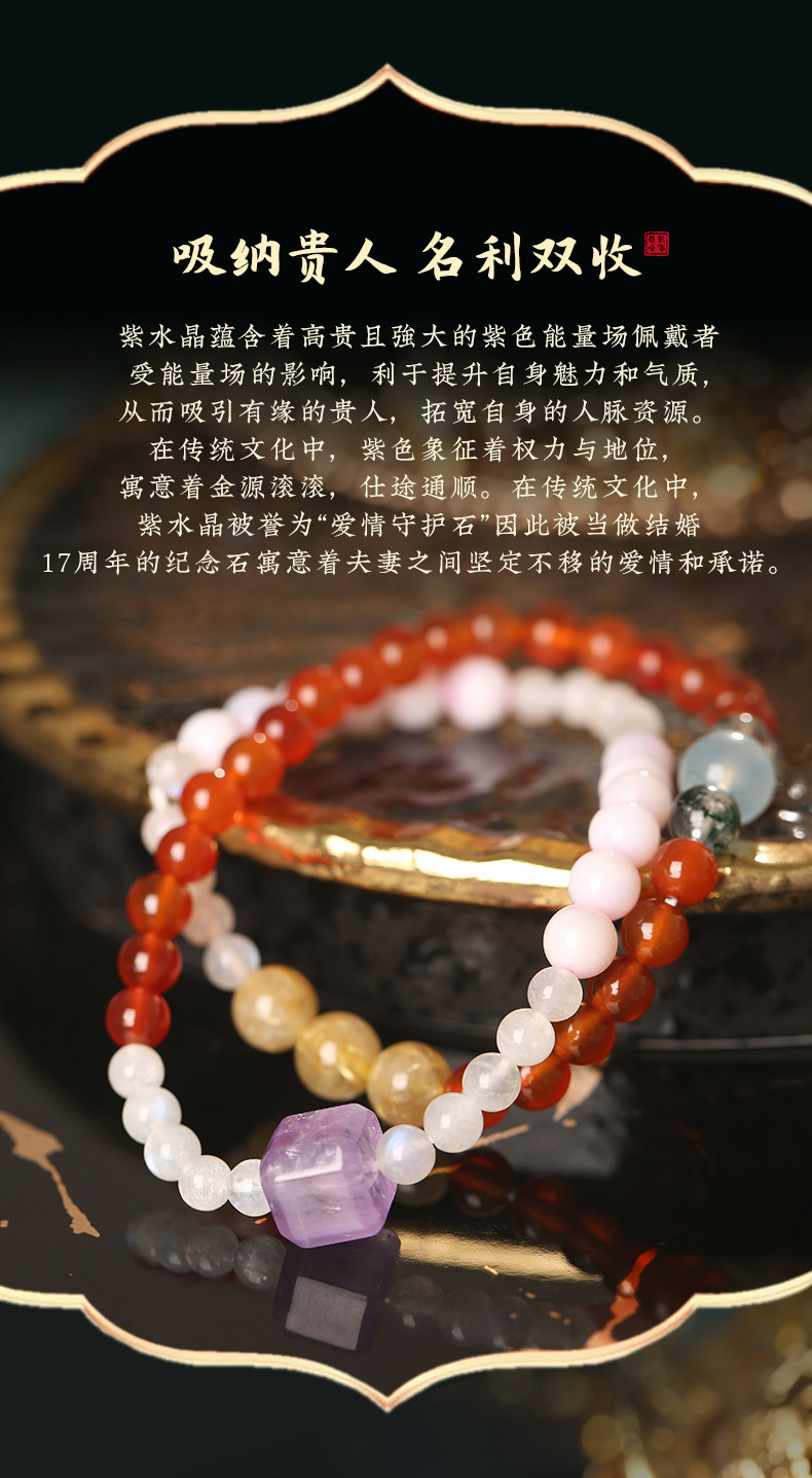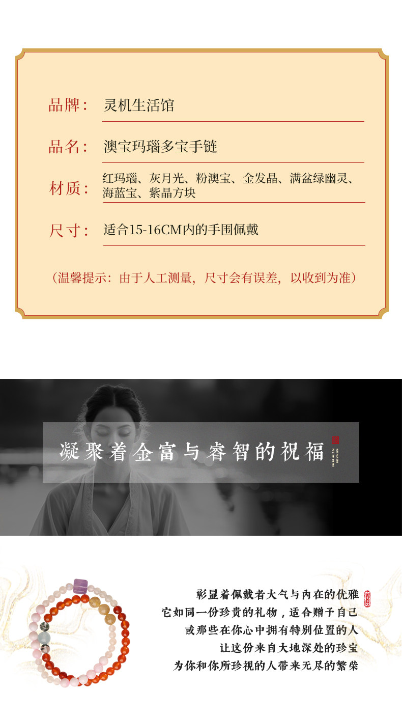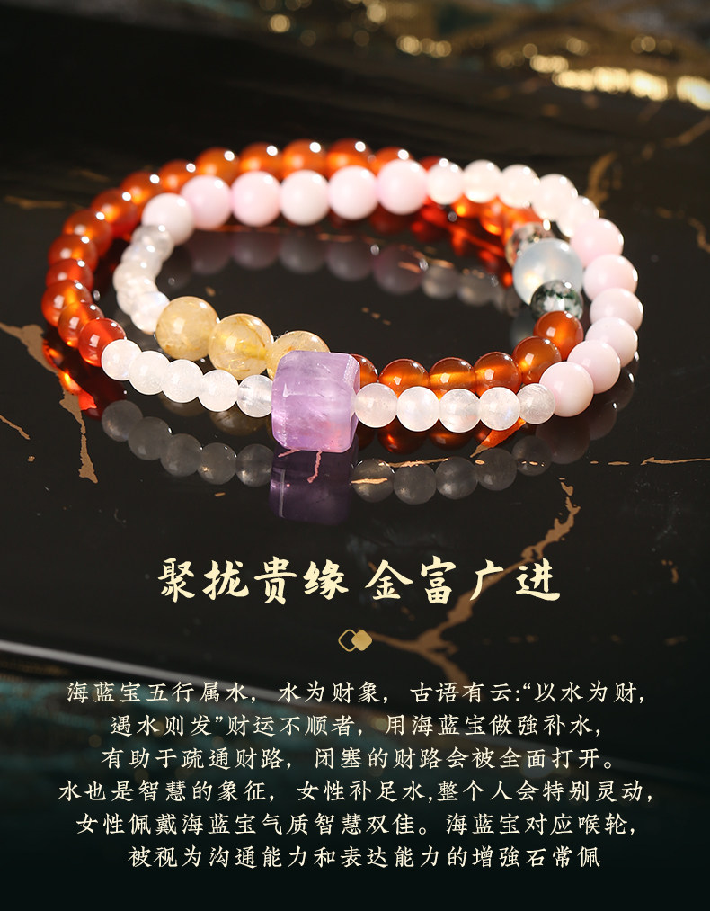【祈愿吉品】澳宝玛瑙多宝手链灰月光金发晶手串