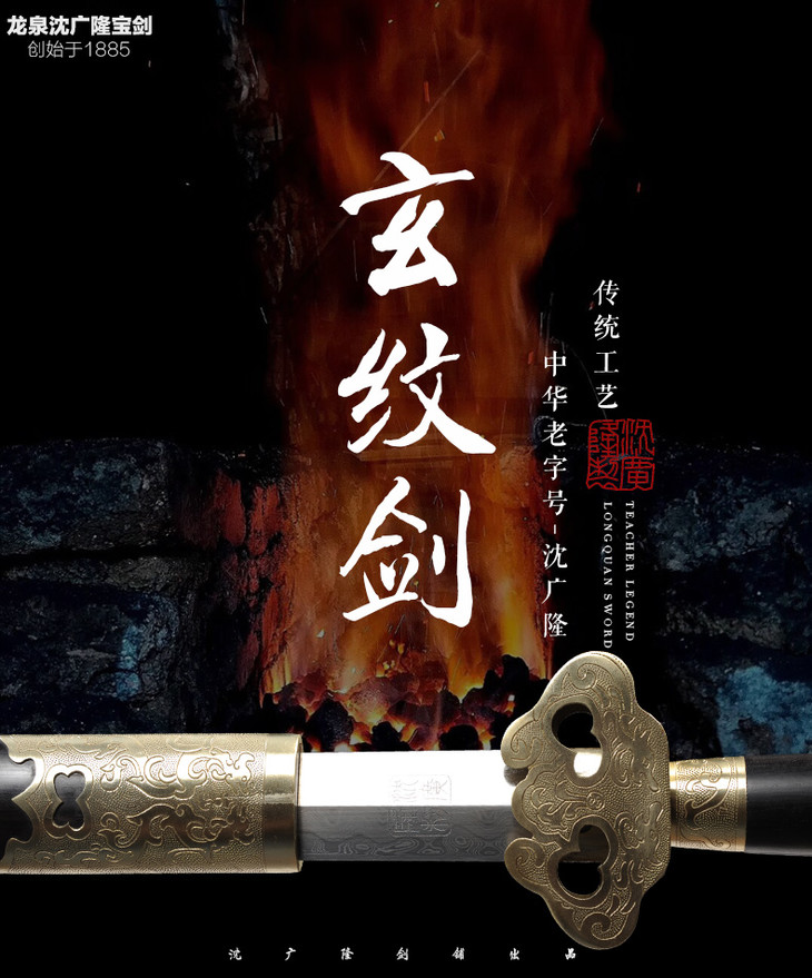 - 相传春秋末期,越国铸剑师欧冶子在龙泉秦溪山铸成龙渊、泰阿、工布三把名剑。并以龙渊为乡名。后因避唐高祖李渊讳,改称龙泉。唐乾元二年设龙泉县。从此,龙泉就成为剑的宝名,誉满天下。沈广隆剑铺位于浙江省龙泉市