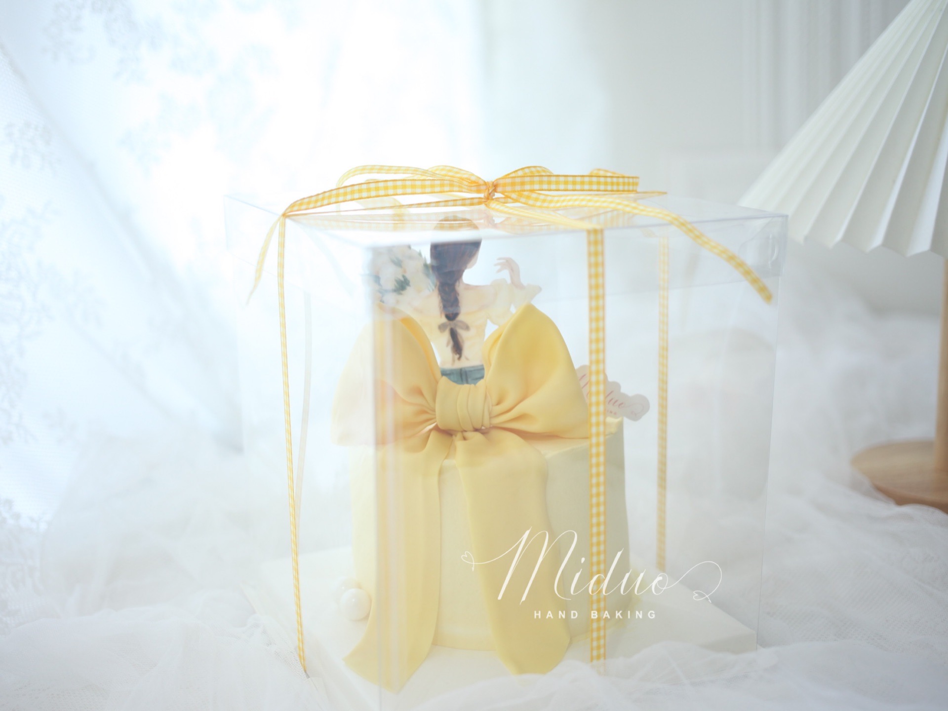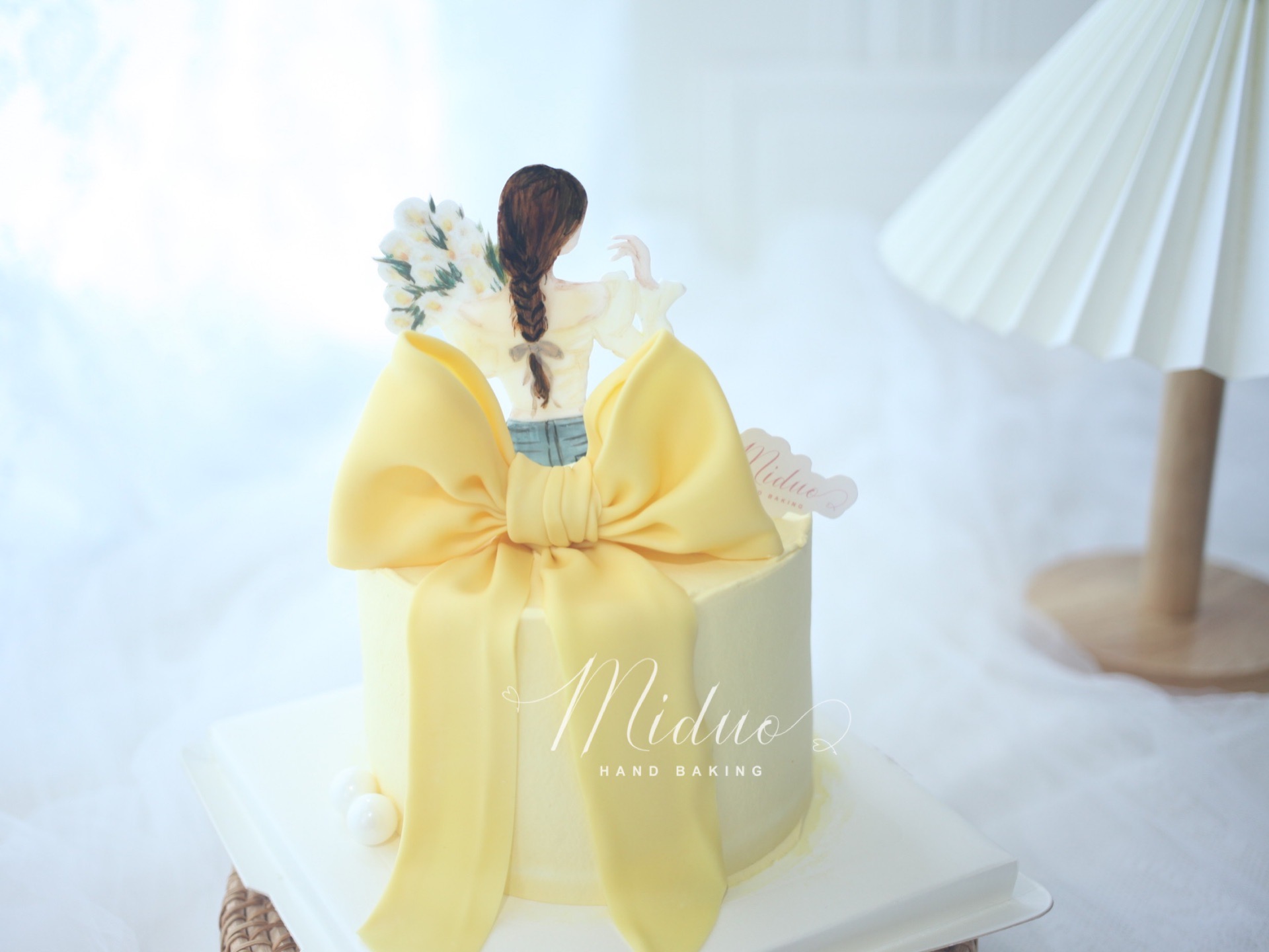 女士款 小清新 黄色 翻糖蝴蝶结 手绘糖牌 背影女孩