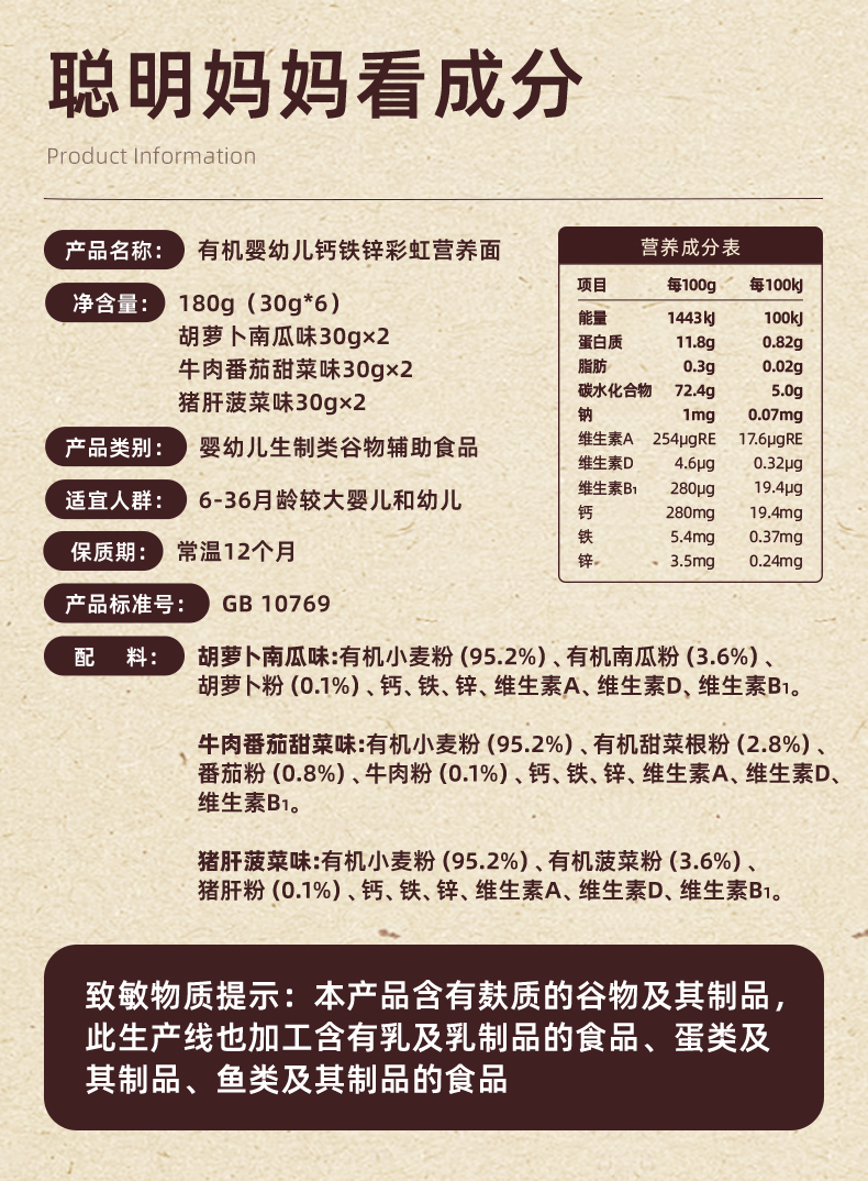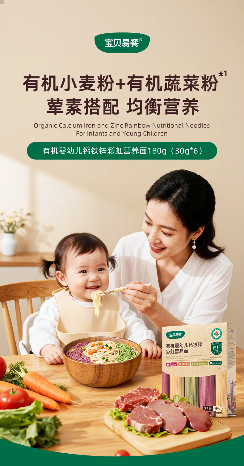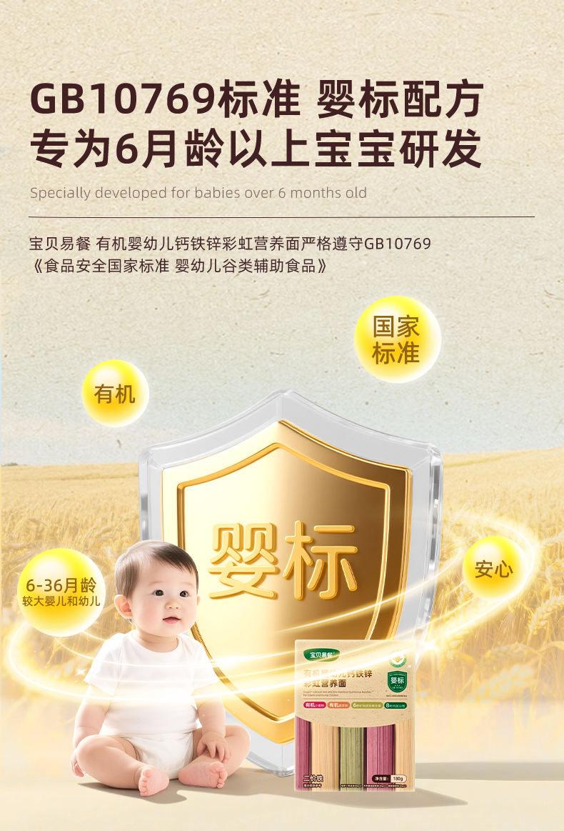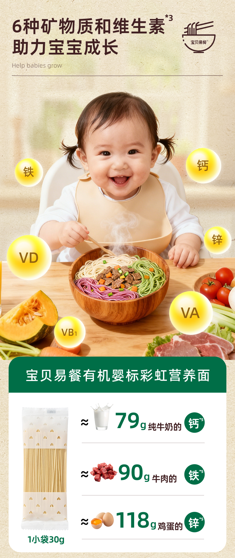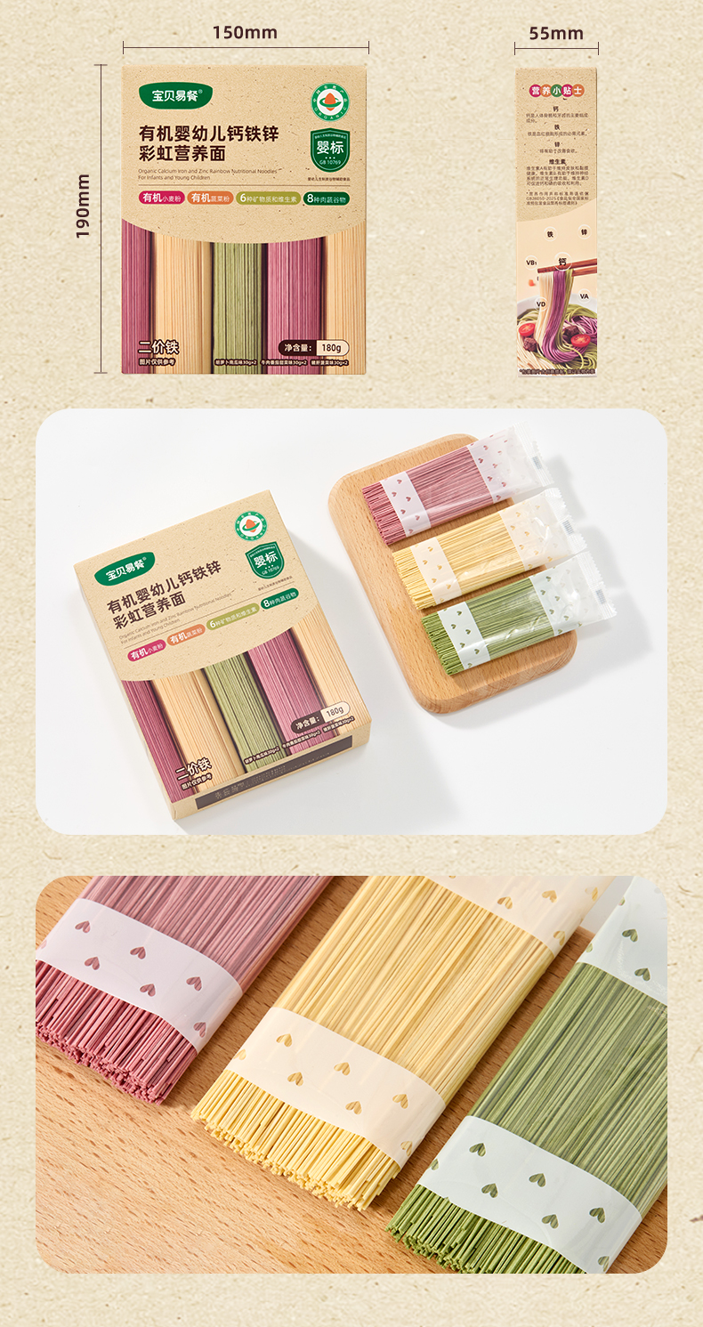 宝贝易餐有机婴幼儿钙铁锌彩虹营养面 180g(30g*6)