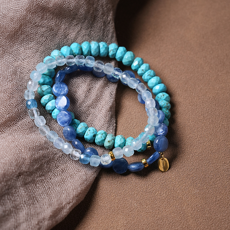 北京仓|Chan Luu-Thalassa-绿松石 海蓝宝石 蓝晶石 串珠 多圈 手链(可单独佩戴)[美国设计师]