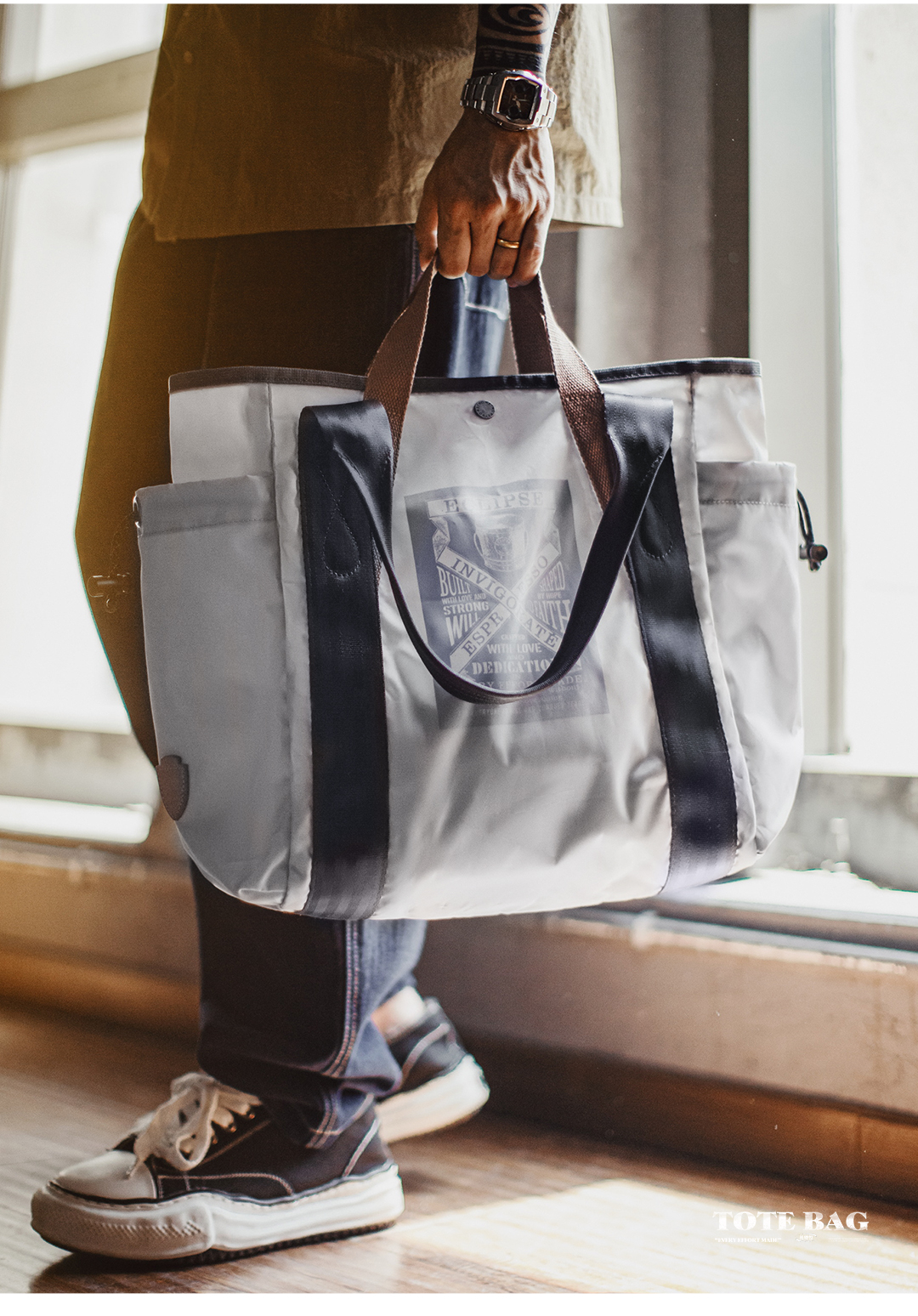 马登工装美式单肩包防水白色托特包大容量电脑包通勤百搭手提包男