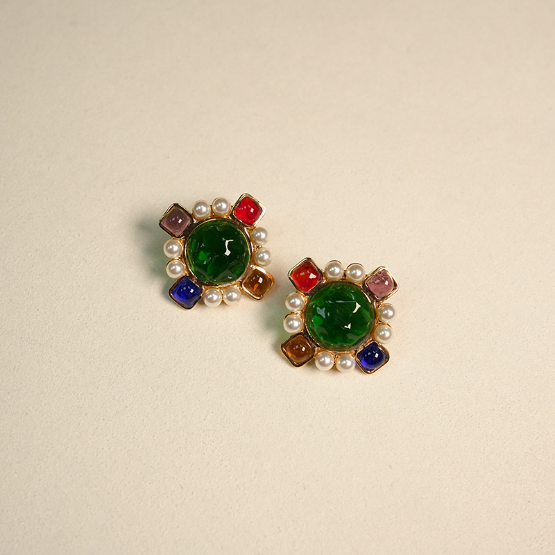 北京仓|Gripoix Paris-Byzantium-绿色 琉璃 耳环[法国设计师]