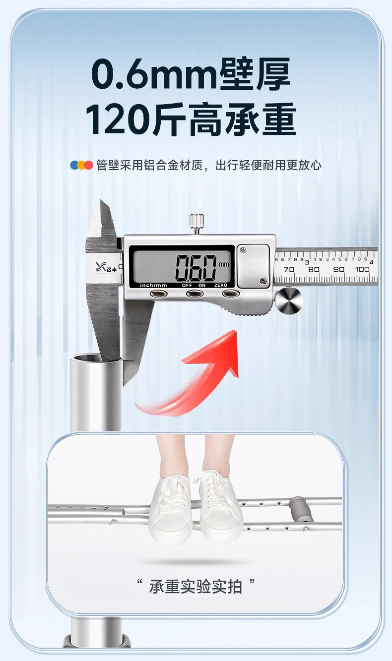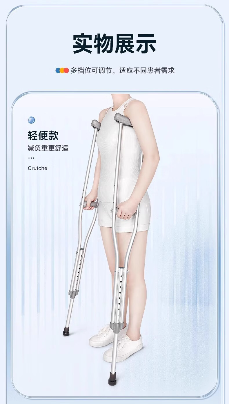 医用不锈钢拐扙 骨折加厚双拐腋下拐防滑轻便可调节拐棍残疾人老人拐杖1支