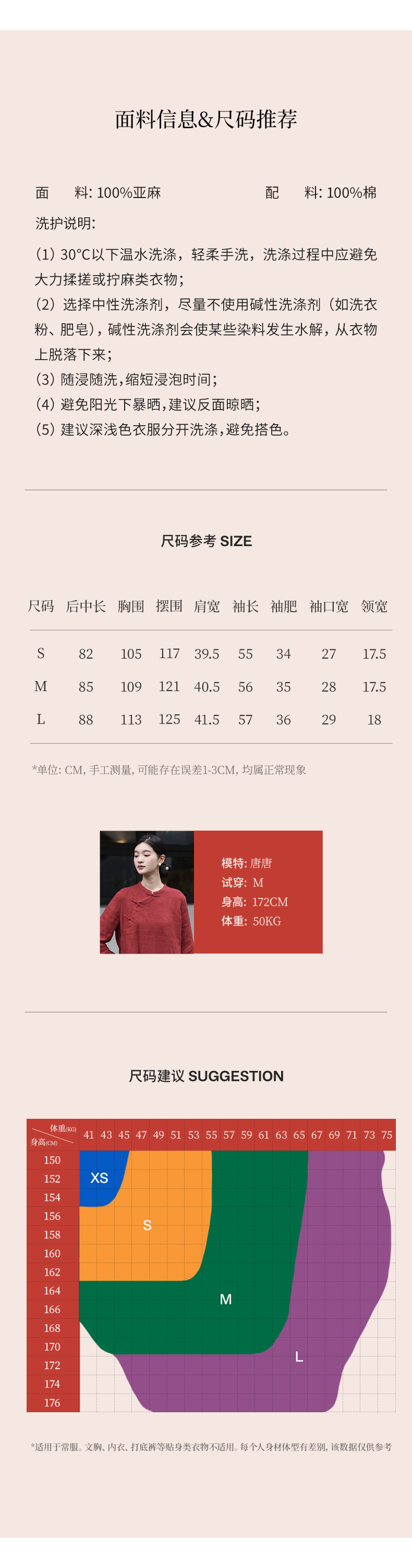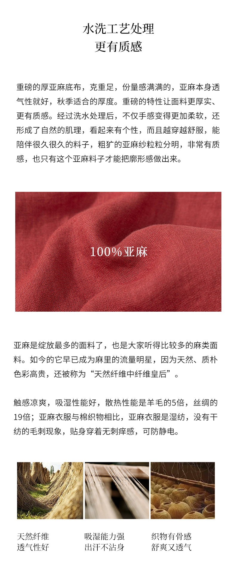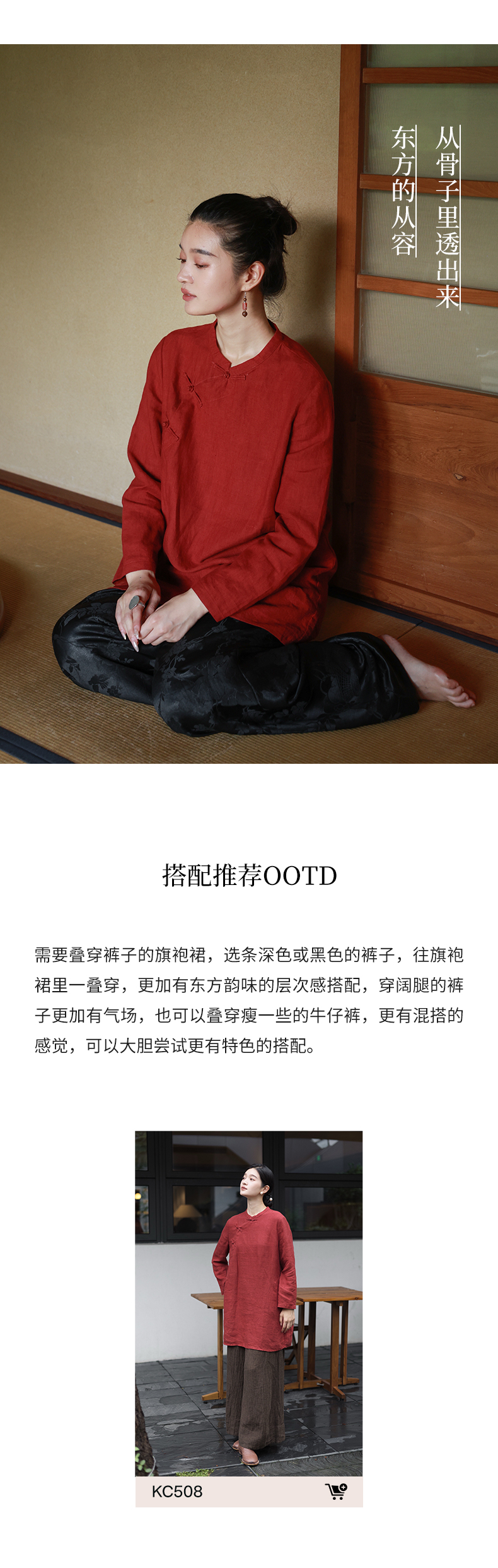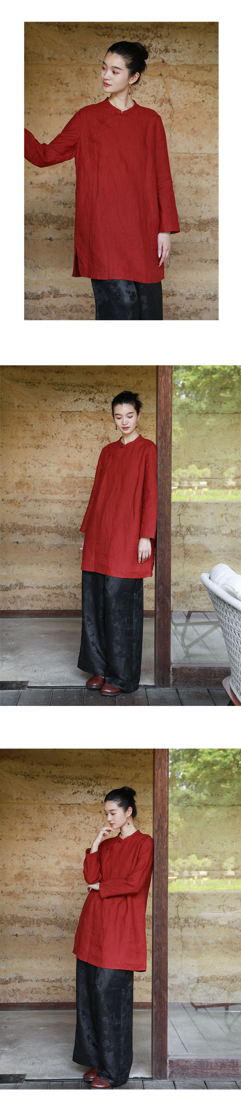 绽放旅行女装497朵/长纤色织亚麻立领新中式长袖旗袍连衣裙女秋季