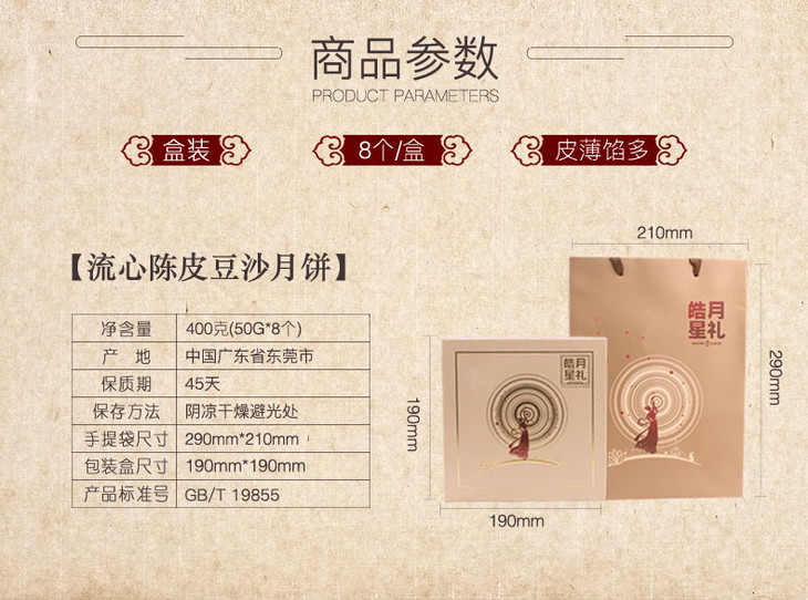 流心陈皮豆沙400g(8个)礼盒装 全国包邮