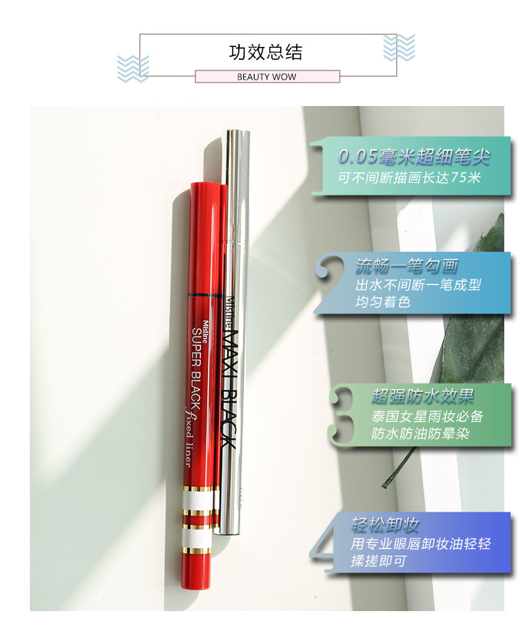 「一笔成型手残党常备」泰国mistine蜜丝婷银管红管防眼线笔持久不晕染一笔成型