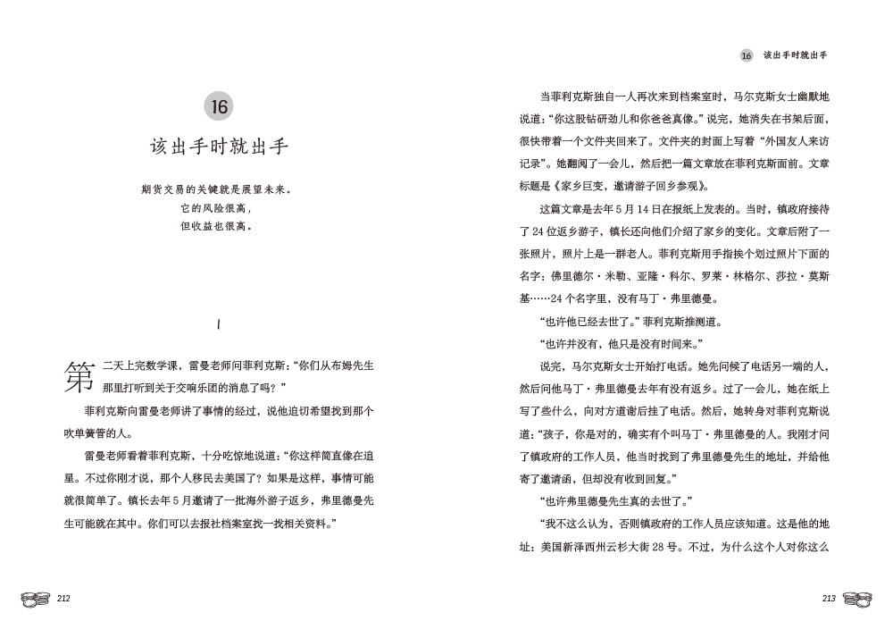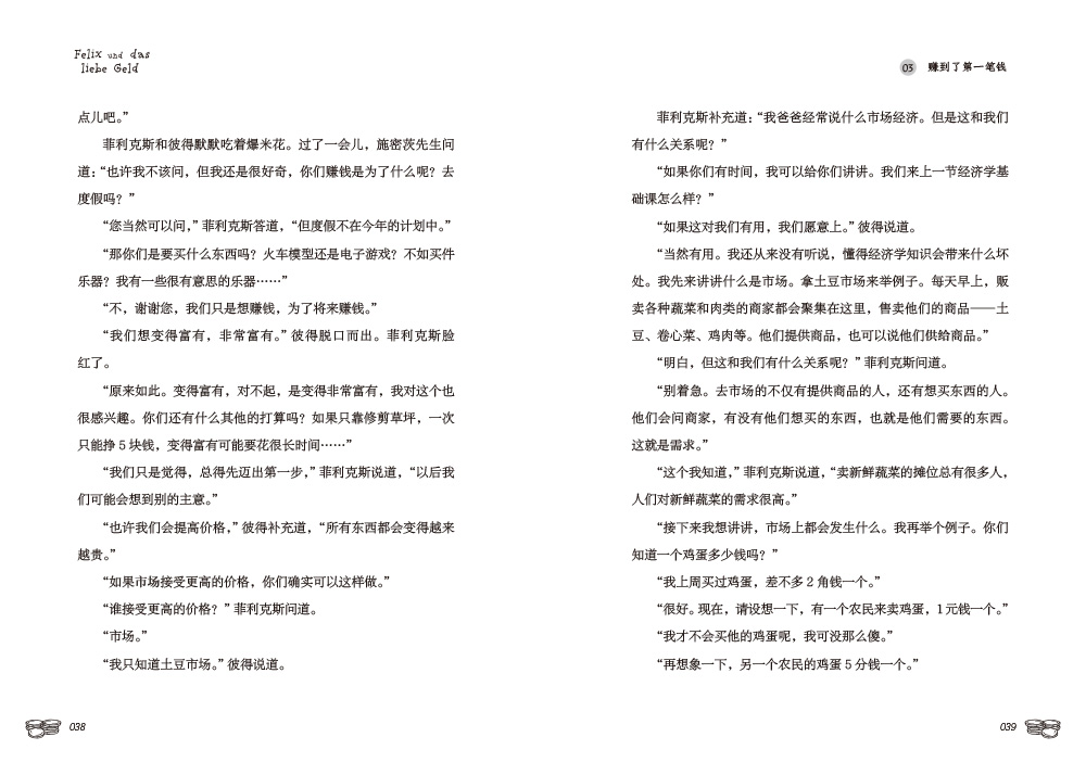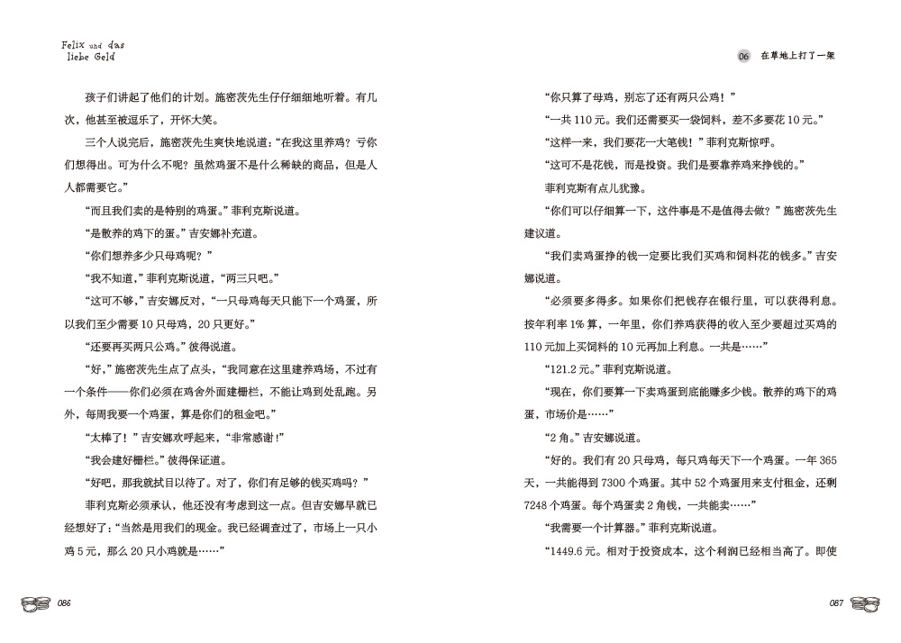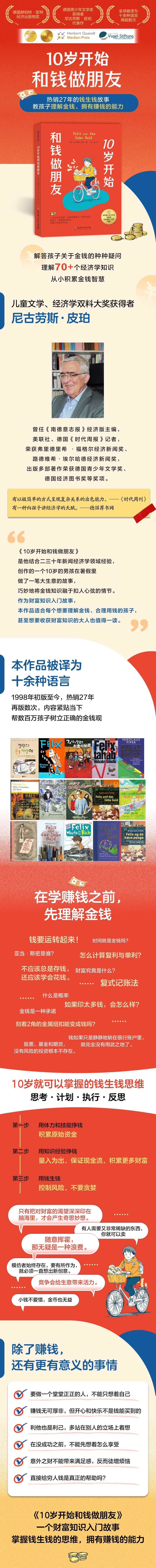 ???面对每天拼命省钱的父母,10岁的菲利克斯暗下决心要变富有,可他的计划一开始就险些在大人们的嘲笑声中化为泡影。菲利克斯和小伙伴们从送面包、卖鸡蛋起步,此后偶然发现的金币让他们迅速实现了财富积累,却也让他们内心充满了挣扎。他们一直没有放弃寻找金币的主人,可事情的发展出乎意料,他们竟然卷入一场精心策划的诈骗70 个金钱等经济学知识融于故事,让孩子在故事中掌握钱生钱的思维,拥有赚钱的能力。