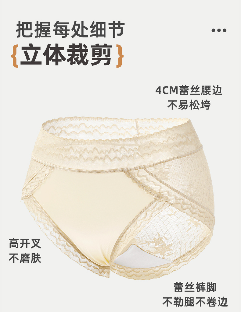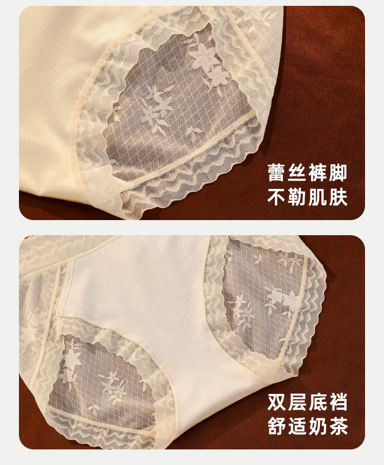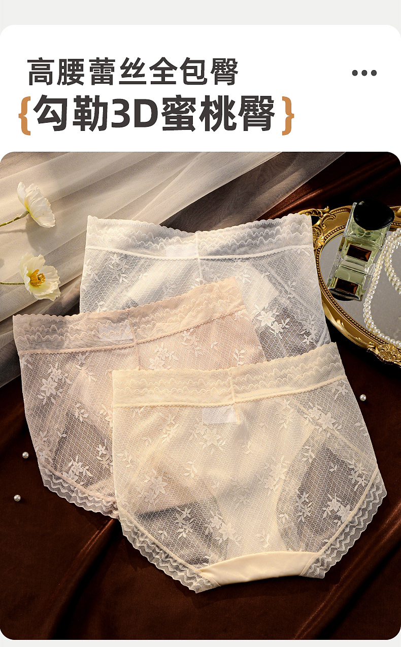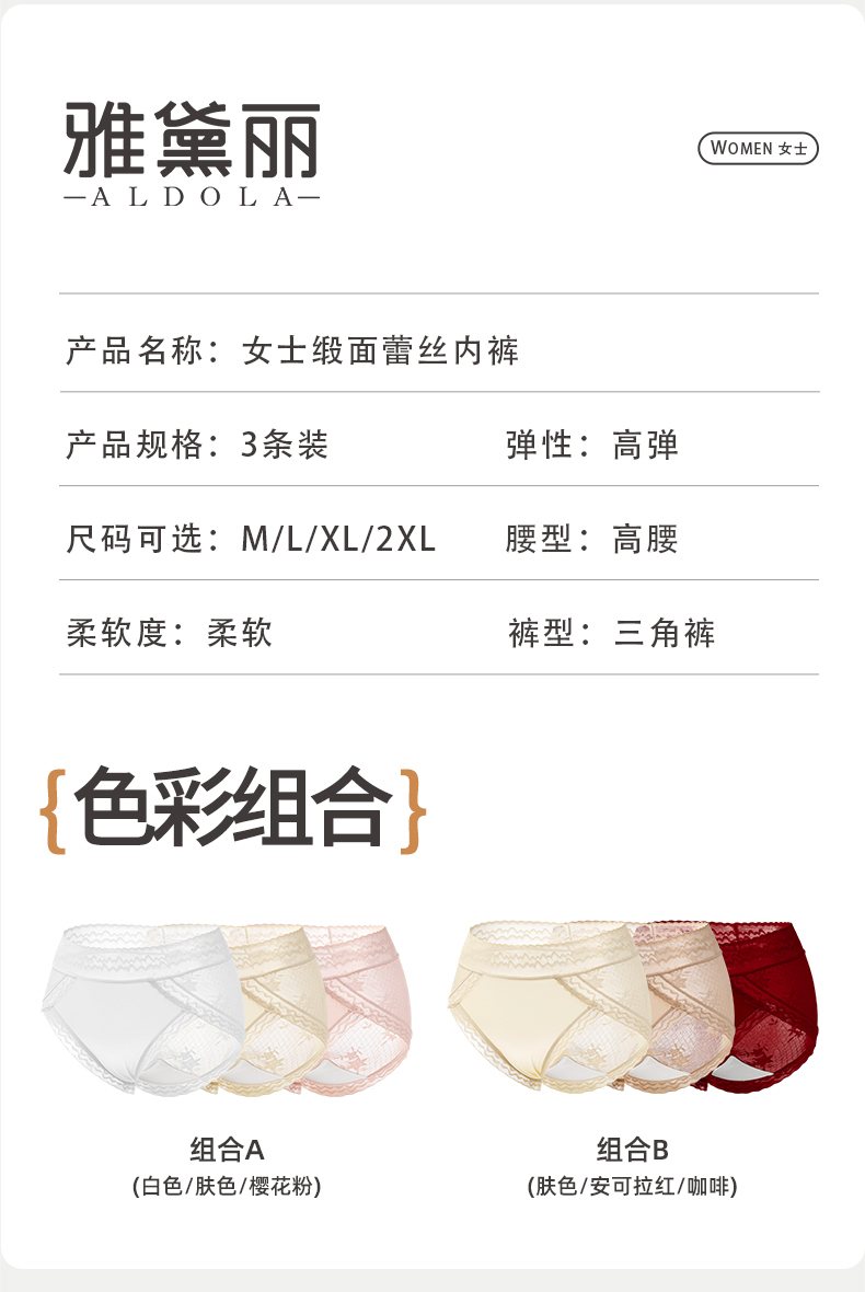【3条装】雅黛俪女士内裤轻薄蕾丝高腰收腹提臀三角裤性感蕾丝裤头