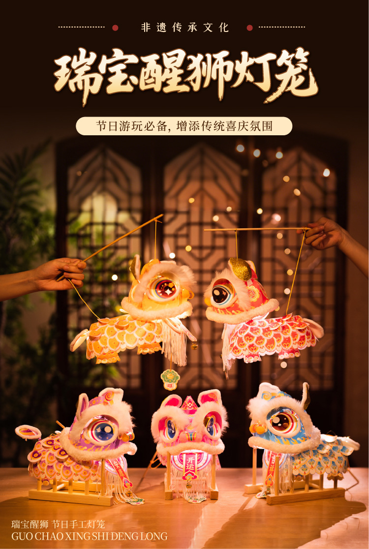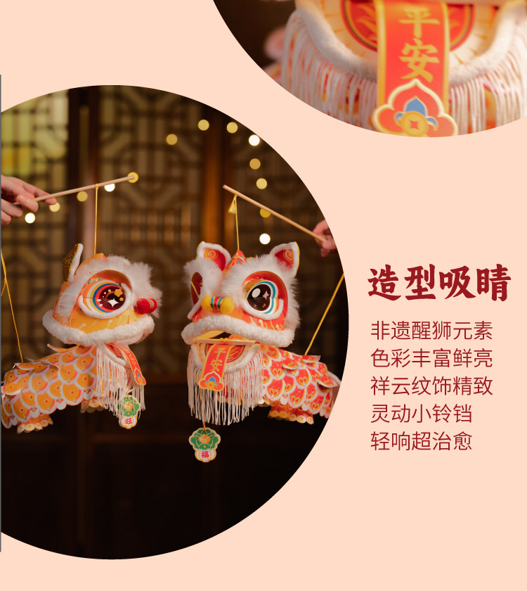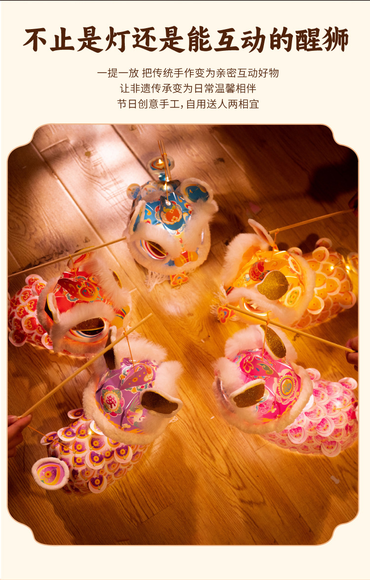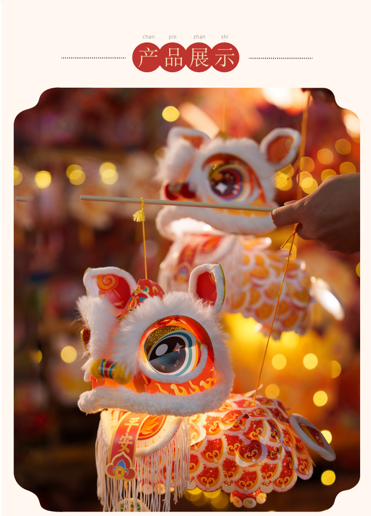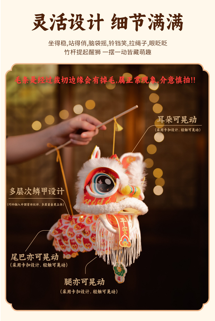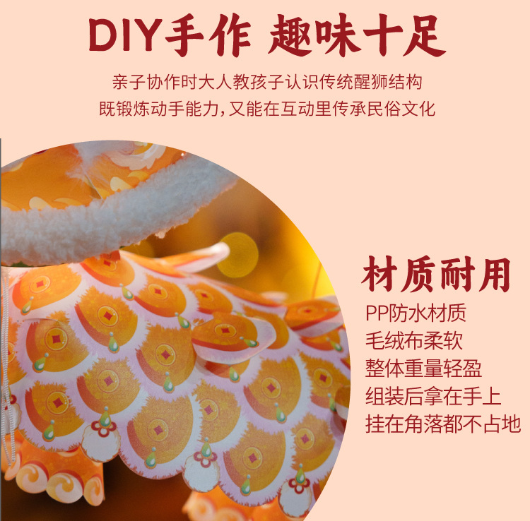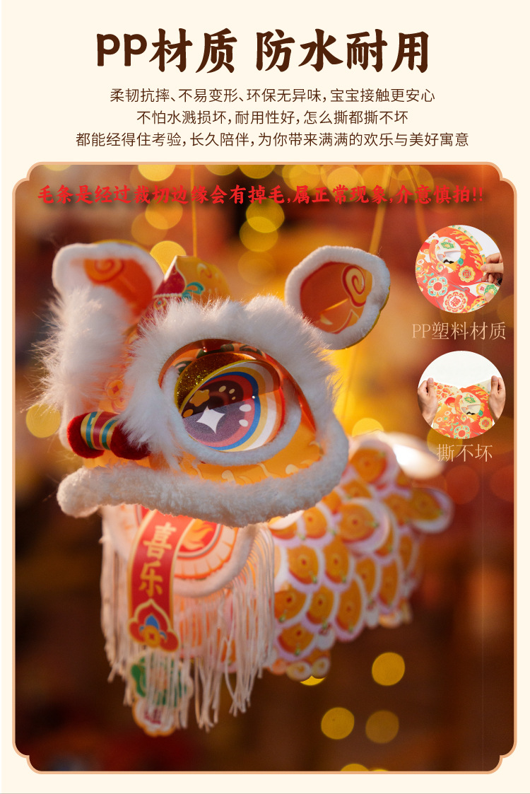 【非遗传承❗️瑞宝醒狮灯笼】国潮醒狮萌趣吸睛,蓬松柔软治愈触感,灵活设计细节满满,PP材质防水耐用,DIY材料幼儿园古风花灯舞狮手提玩偶QQ