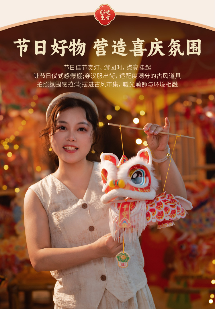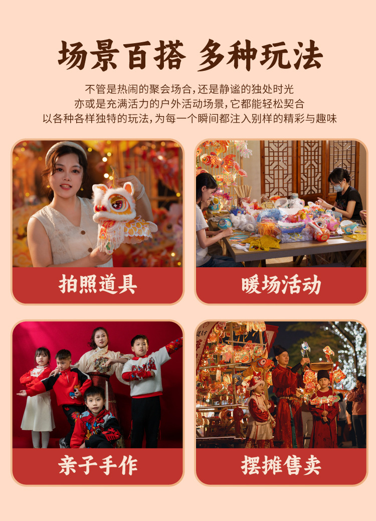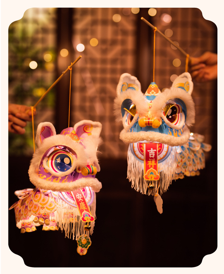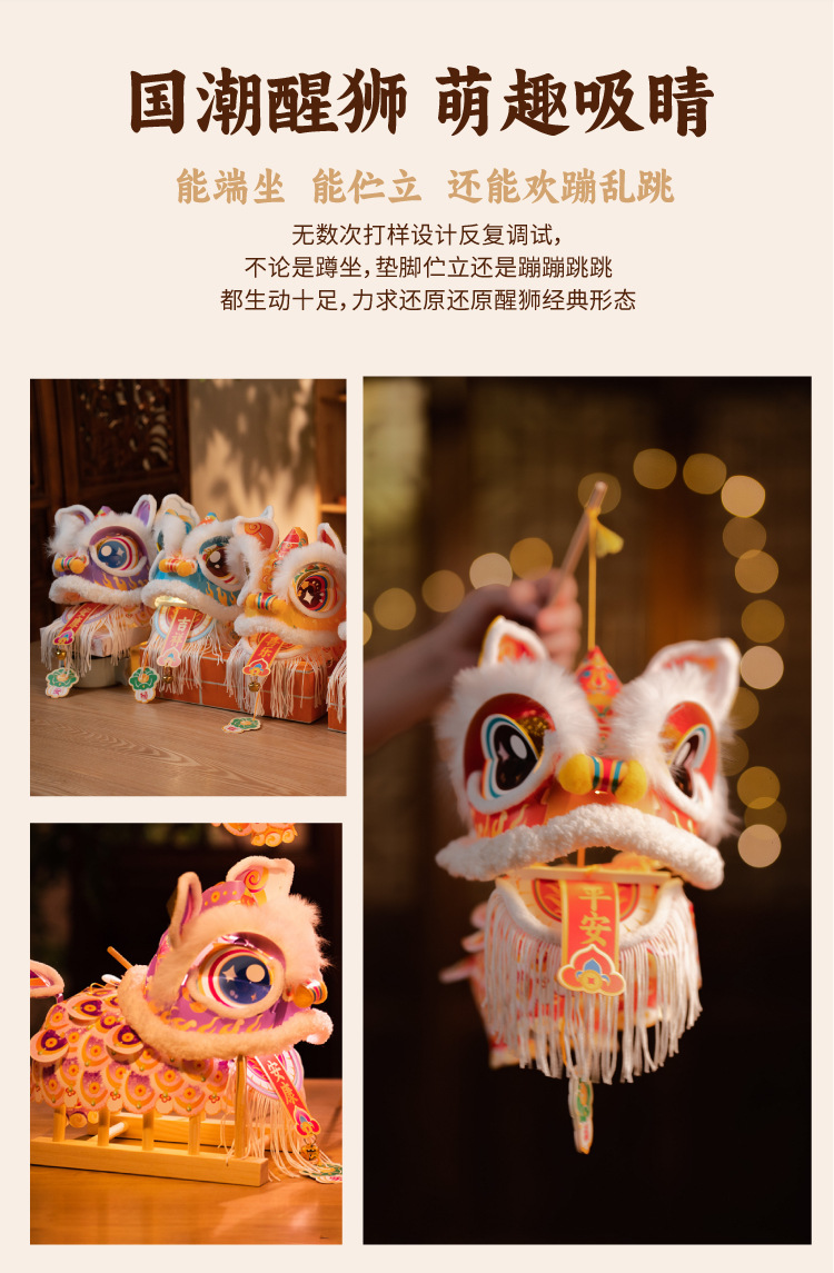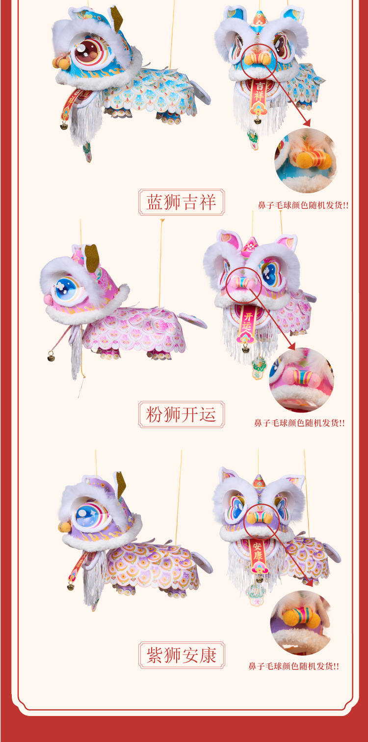 【非遗传承❗️瑞宝醒狮灯笼】国潮醒狮萌趣吸睛,蓬松柔软治愈触感,灵活设计细节满满,PP材质防水耐用,DIY材料幼儿园古风花灯舞狮手提玩偶QQ