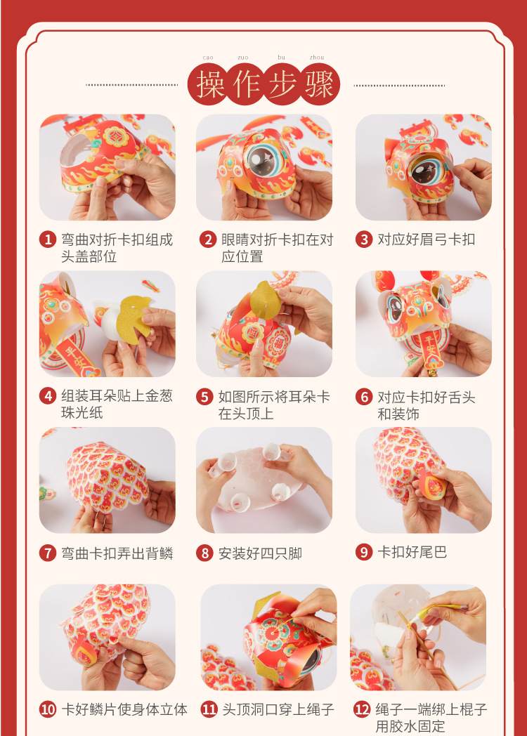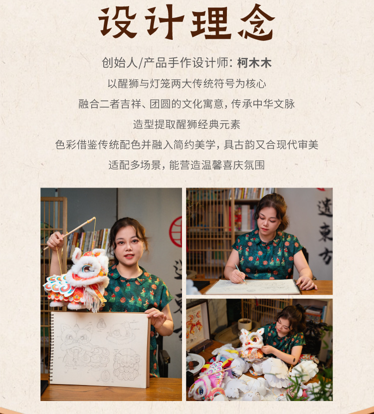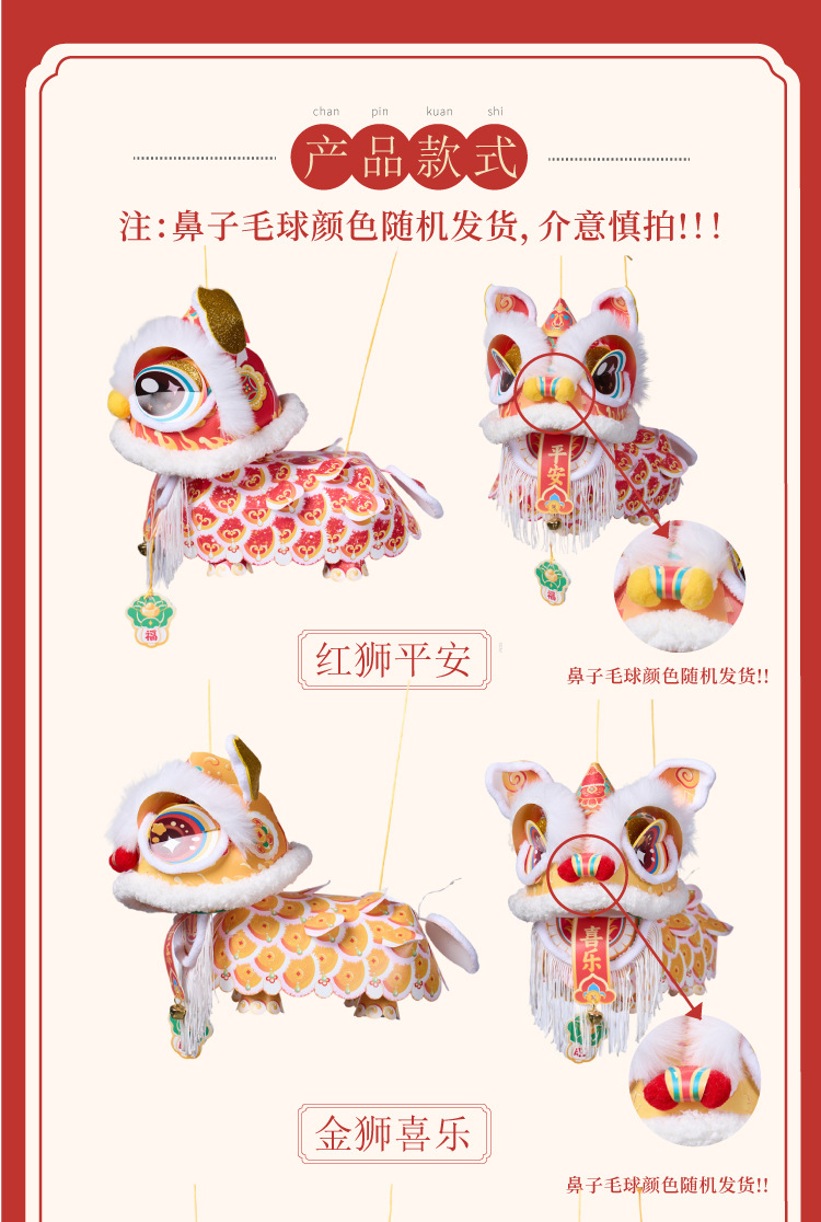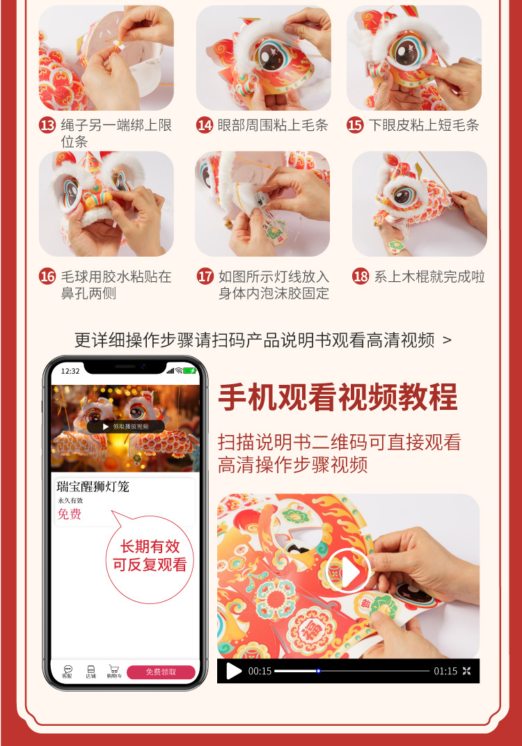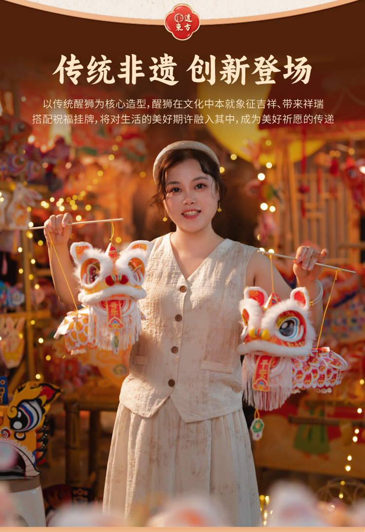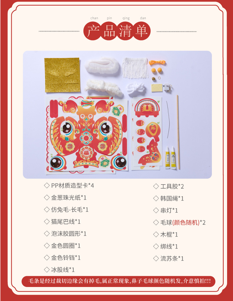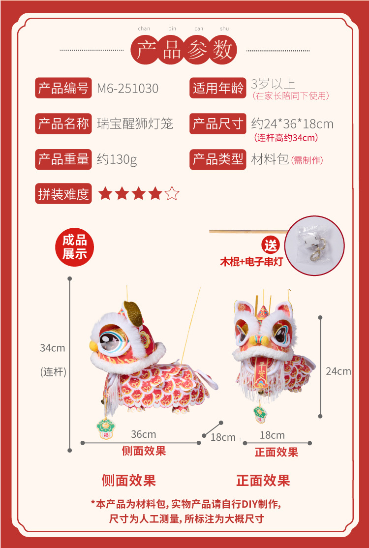 【非遗传承❗️瑞宝醒狮灯笼】国潮醒狮萌趣吸睛,蓬松柔软治愈触感,灵活设计细节满满,PP材质防水耐用,DIY材料幼儿园古风花灯舞狮手提玩偶QQ