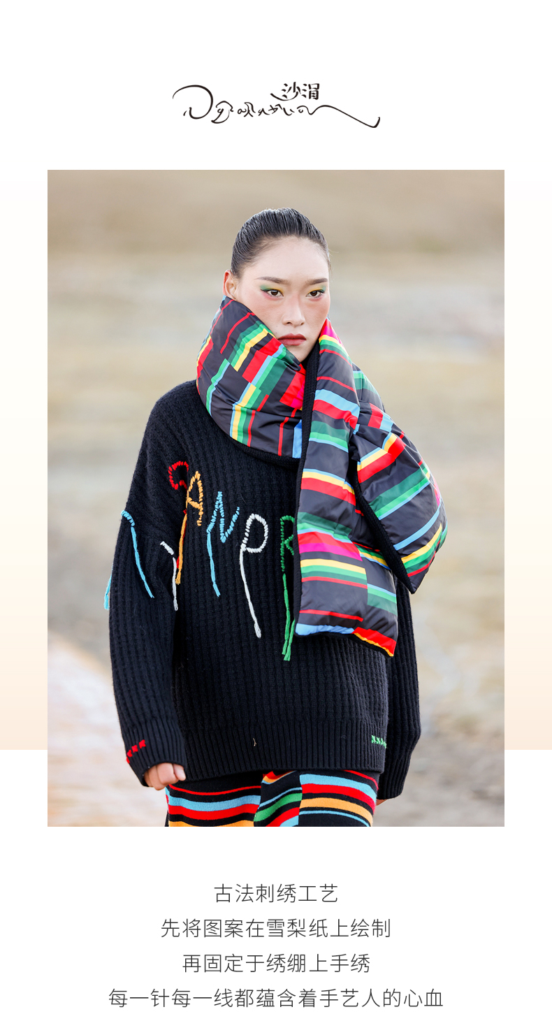 历年在巴黎时装周亮相,享誉世界的艺术羊绒品牌[Sandriver 沙涓]由羊绒布道者郭秀玲女士创立。阿拉善自有牧场纯种羔羊绒,日本国宝设计师小筱顺子,上海自有基地精工细作。承载羊绒情怀,坚持匠人品质。