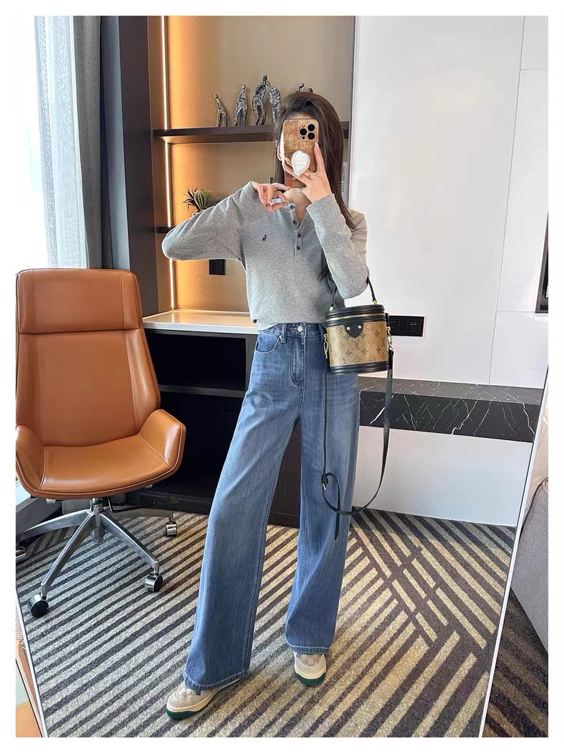 弹力窄版直筒牛仔裤女2026新款春季宽松阔腿裤,姐妹们!今天bi须给你们安利这款shen仙牛仔裤篙弹四面弹面料ju舒服,久坐不勒腿,走路wu束缚。Jing典蓝调佰搭,窄版拖地版型尽藏肉了呀版型是:纵向拉伸腿线,悄悄修饰腿型不贴肉,拖地长度gang好盖住鞋跟,简约纯色无多余装饰,搭卫衣,衬衫,针织衫都适配,休闲通勤一键切换,日常穿洋气显气质,bi眼ru不踩雷的佰搭shen裤 Jing典蓝永不过时,