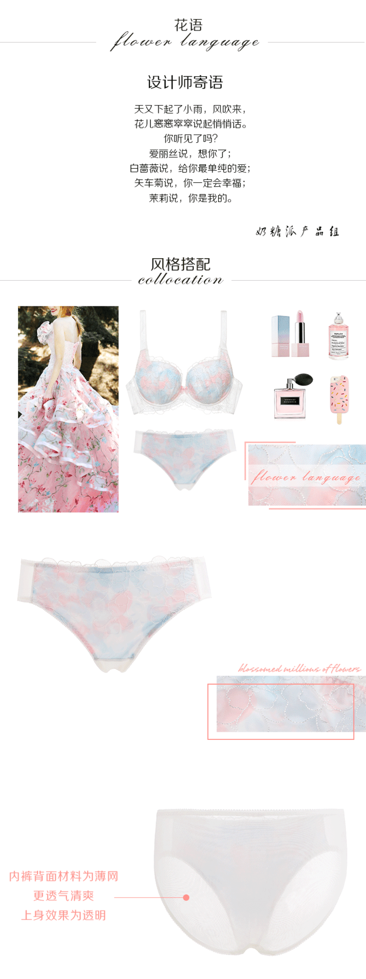 奶糖派花语主题配套刺绣内裤 速干内裤