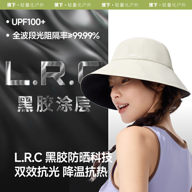【云粉节】【2件8.5折】6楼蕉下女士侧脸防晒黑胶渔夫帽BM714吊牌价179