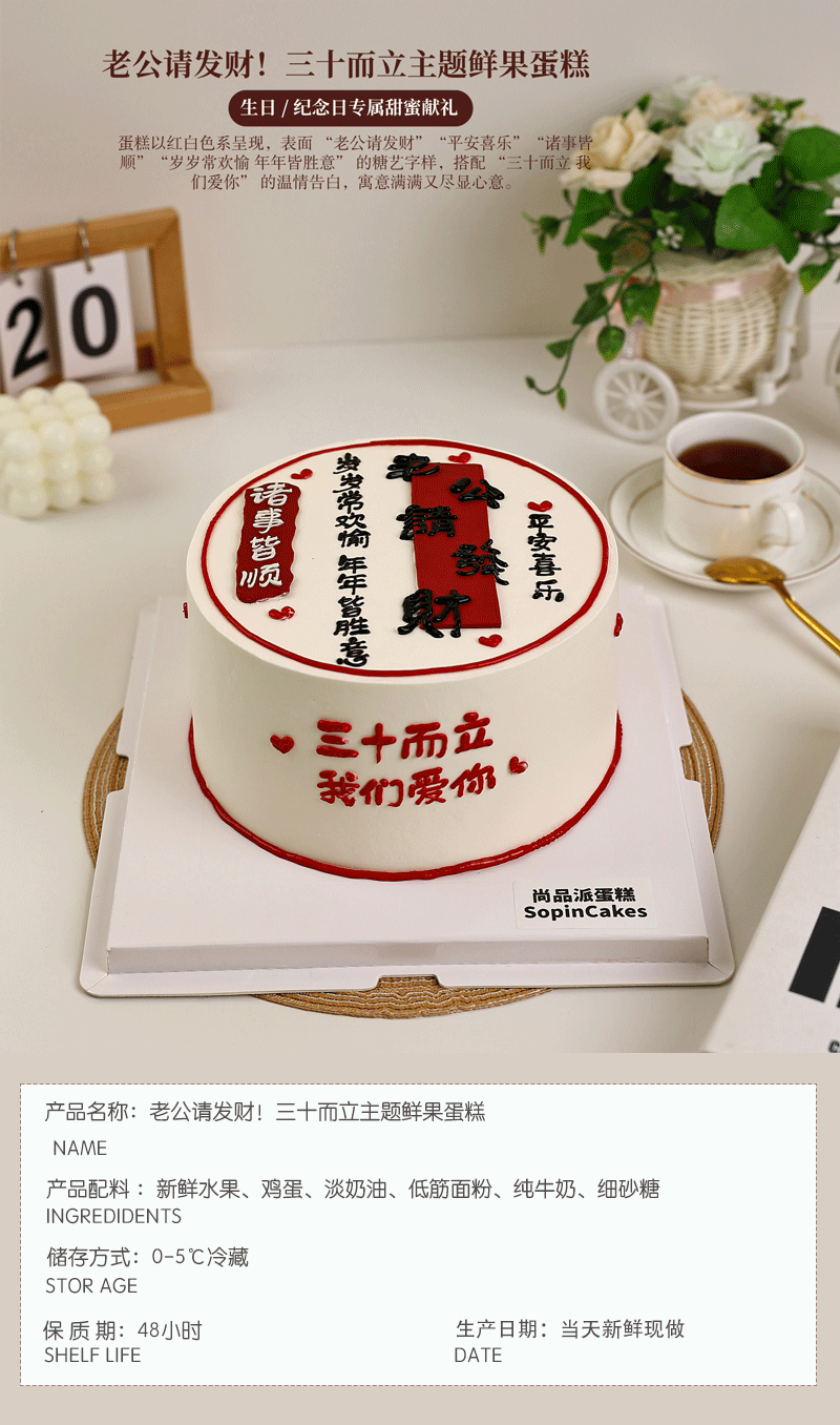 老公请发财!三十而立主题鲜果蛋糕 平安喜乐事事顺 生日 / 纪念日专属甜蜜献礼【惠州】