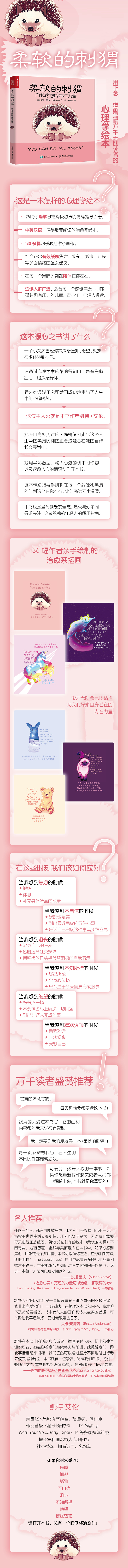 《柔软的刺猬 自我疗愈的内在力量》是一本能带给你无限勇气和治愈力量并且能够有效减轻压力的超暖心绘本。作者从自己曾罹患抑郁症的亲身经历为背景,在每个章节中分别以自己与每个现代人都时常面临的焦虑和抑郁、丧失信心、沮丧、恐惧、绝望、孤独的心境为主题,给出了能够有效缓解这些负面情绪的温暖建议,还有包括超过130幅由作者亲手绘制的可爱小动物,这些看似简单的画作中潜藏着巨大的治愈力量,而它们将在每一个孤独和黑暗的时刻陪伴在你左右,让你感觉无比温暖,帮助你对抗头脑中的抑郁和焦虑等负面情绪,走出阴霾,摆脱孤独,重拾起对生活的信心。 此外,《柔软的刺猬 自我疗愈的内在力量》也是当代缺乏安全感、追求与众不同、寻求关注、倍感孤独的年轻人的解压指南,无论你正在经历多么艰难的时刻,一切终将会过去,而你并不孤独。