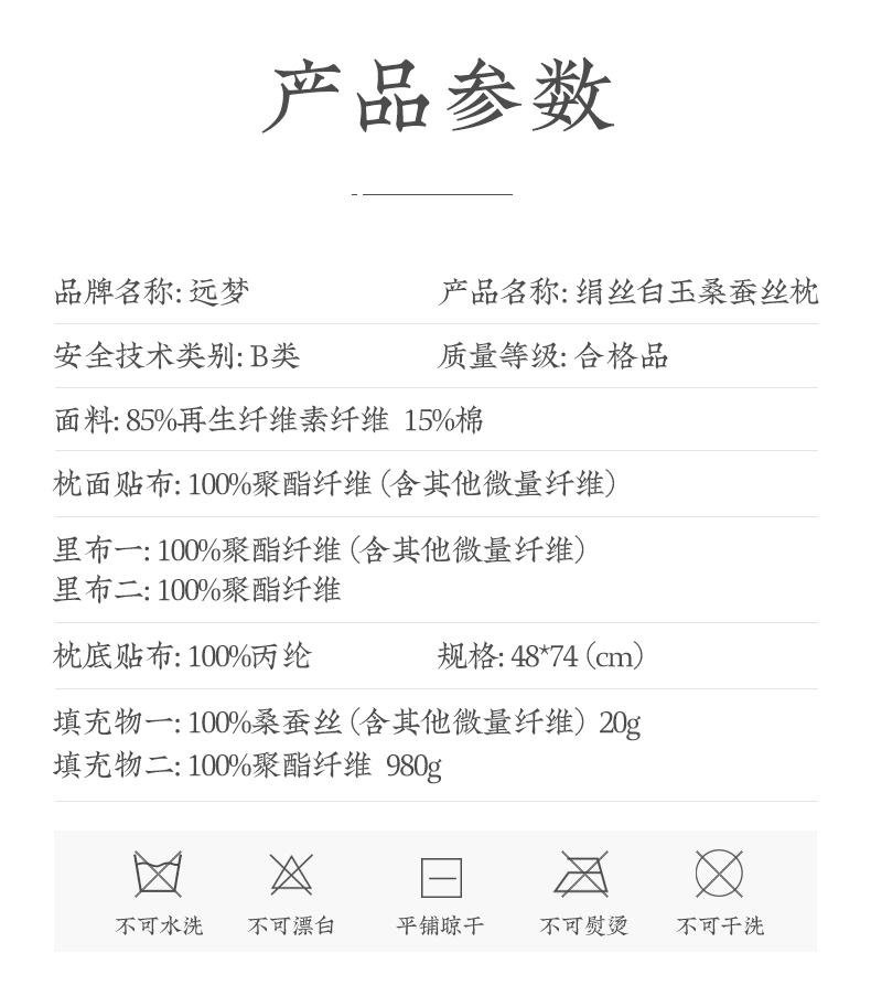 上层100%桑蚕丝,严选好蚕丝,丝质柔韧绵长,细腻软滑,温柔包裹头部;下层超细纤维,蓬松弹软,有力支撑,长久使用不易塌陷、结团,双层融合,托扶头颈肩,轻软不累颈,减轻压力,缓解疲惫,整夜好梦